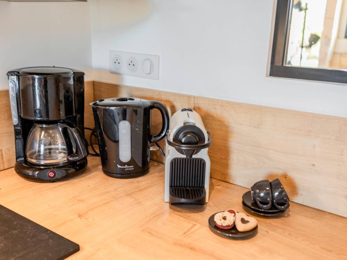 Layout : Parterre: Wohnzimmer mit TV, Dekokamin, Sitzecke, Heizung(elektrisch) , Küche mit Wasserkocher, Toaster, Kochherd(4 Kochplatten, elektrisch), Dunstabzugshaube, Kaffeemaschine(nespresso cups), 2x Backofen, Mikrowelle, Geschirrspüler, Kühl-/Gefrierkombination, Küchenmaschine , Schlafzimmer mit Doppelbett(140 x 190 cm) , Badezimmer mit Dusche, Waschbecken, Toilette , Waschraum mit Waschmaschine , Toilette, Gartentüren