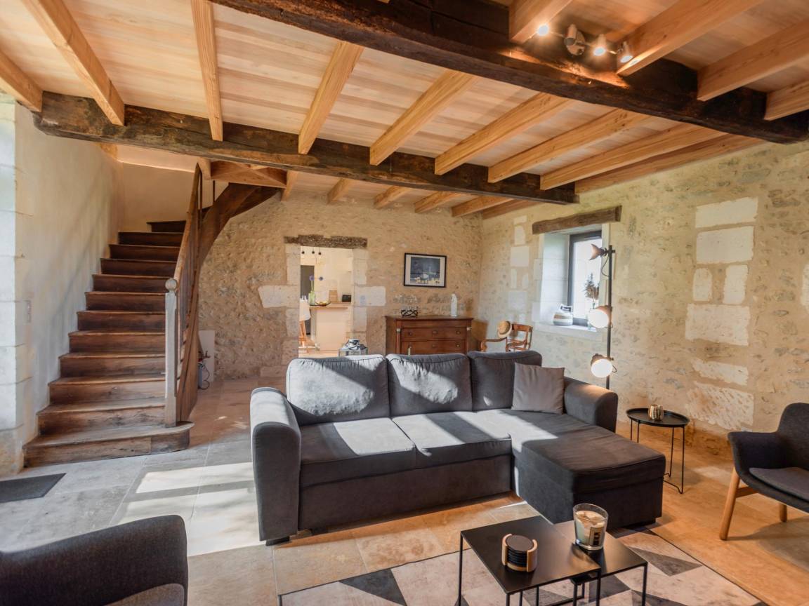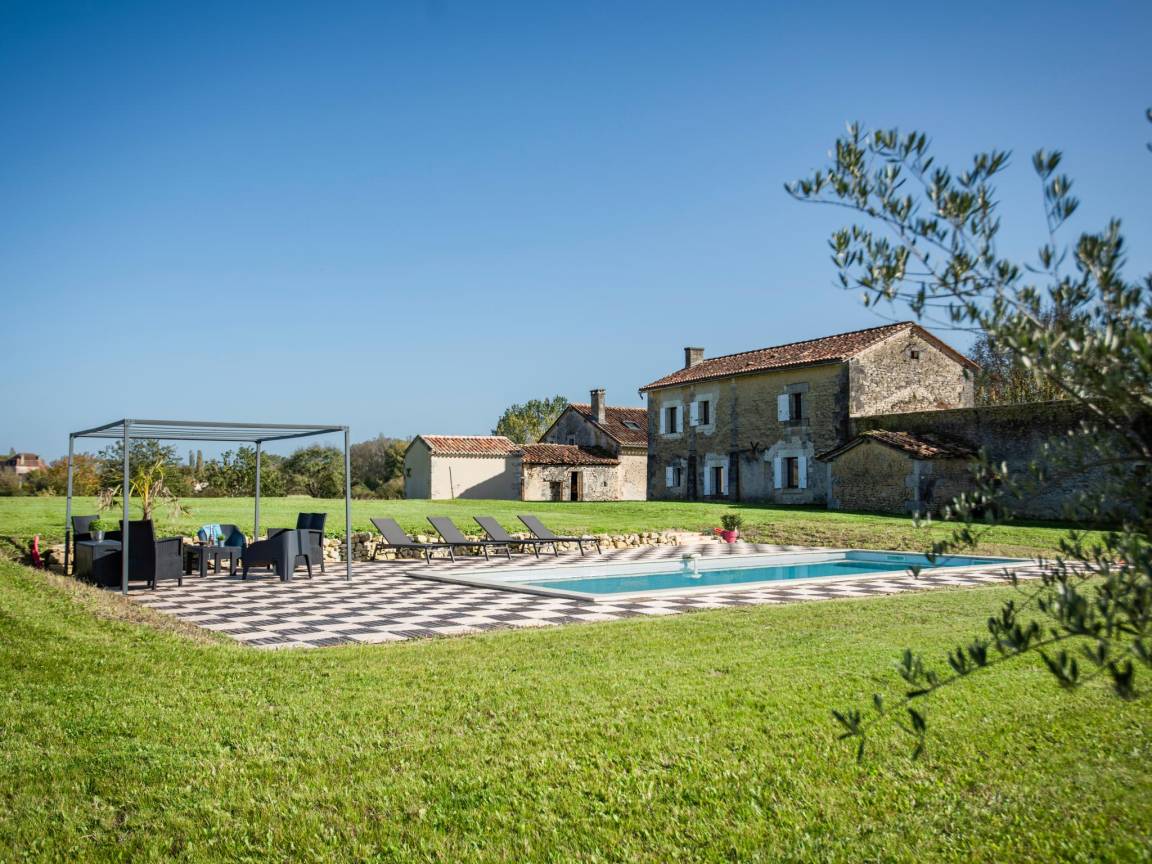 Hausbeschreibung : Dieses sorgfältig restaurierte Landhaus war Teil des Chateau de Clauzuroux aus dem 17. Jahrhundert. Es liegt am Rande einer kleinen Landstraße mit einem anderen Haus gegenüber, ohne direkte Einsicht. Es hat einen offenen Garten mit einem schönen privaten Pool und einem weiten Blick über die Landschaft. Rundherum gibt es Terrassen mit vielen Sitzgelegenheiten zum Sonnenbaden und Genießen. Das Innere des Hauses ist ländlich, aber hell und mit viel Platz. Ideal für Familien und Freunde!