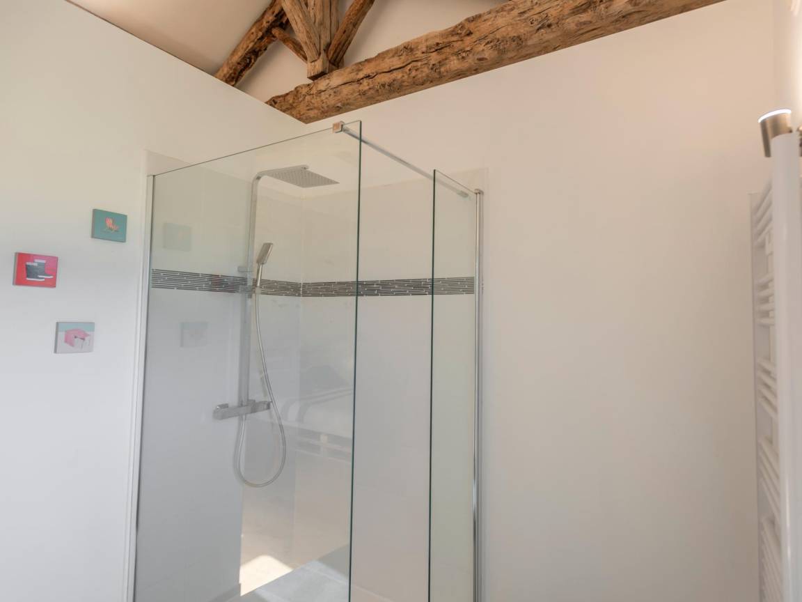 In der 1. Etage: Schlafzimmer mit Doppelbett , Schlafzimmer mit 2x Einzelbett , Schlafzimmer mit Einzelbett, Einzelunterschiebebett, Hochbett 1 Person , 1x Kinderbett (ohne Bettwäsche) , Badezimmer mit Dusche, Waschbecken, Toilette , Badezimmer mit Badewanne, Dusche, 2x Waschbecken , Flur, Toilette