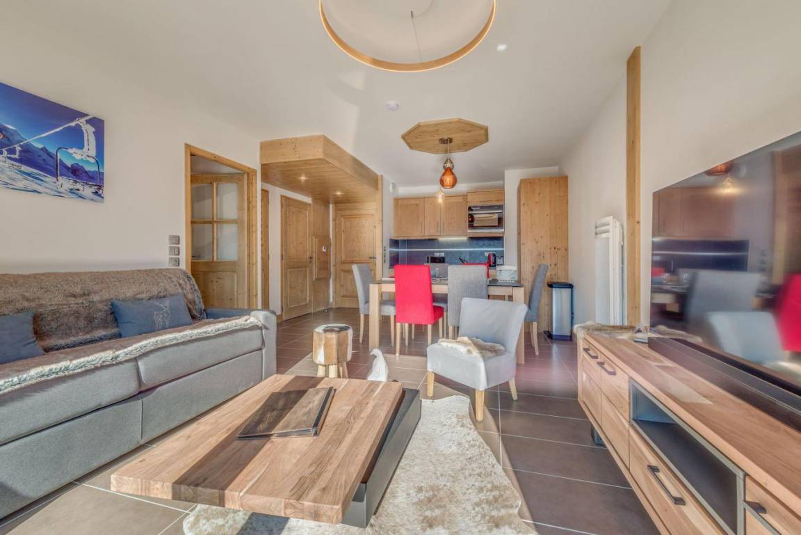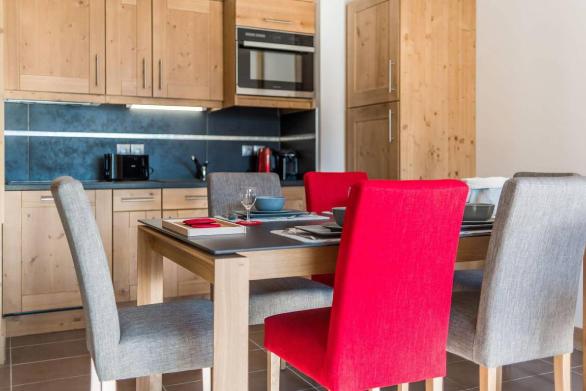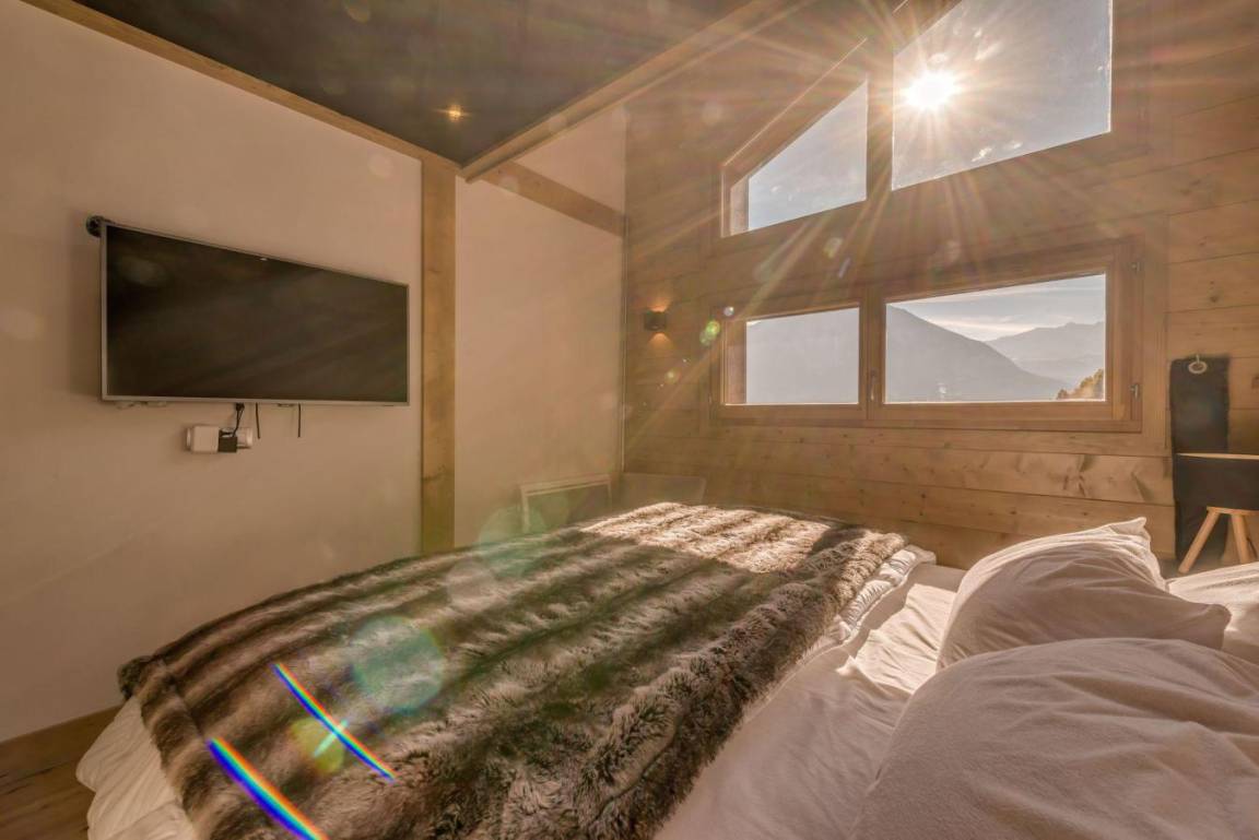 Fläche von ungefähr 47 m² enthält 6 m² unter 1,80 m. 14te Etage. Orientierung : Süd, West. Wohnzimmer mit Klappschlafcouch (160). Schlafzimmer mit Doppelbett (180). Zwischengeschoss mit 2 Einzelbetten. Kochnische mit Fonduegerät, Raclettegerät, Wasserkocher, Kaffeemaschine, kleiner Backofen mit Mikrowellenfunktion, Toaster, Waschmaschine, Geschirrspülmaschine, 2 Glaskeramikkochfelder, Kühl-Gefrier-Kombination. Waschräume mit Dusche, WC. Balkon mit Grillrost.
