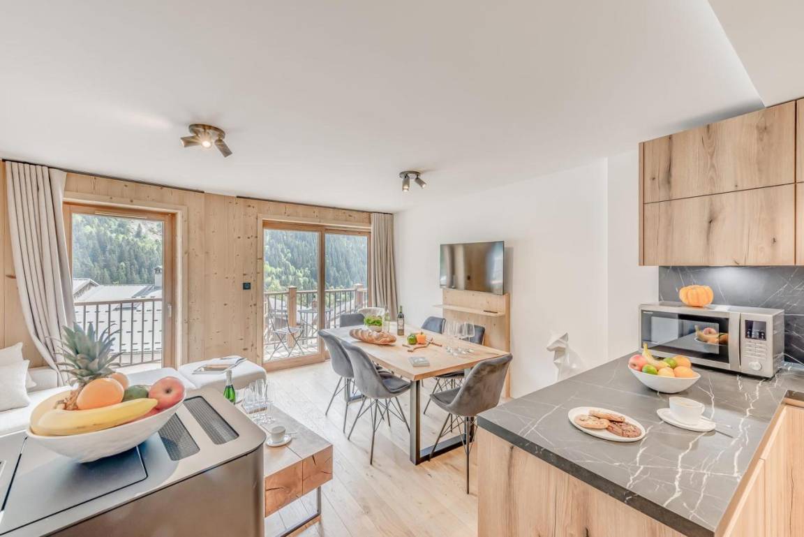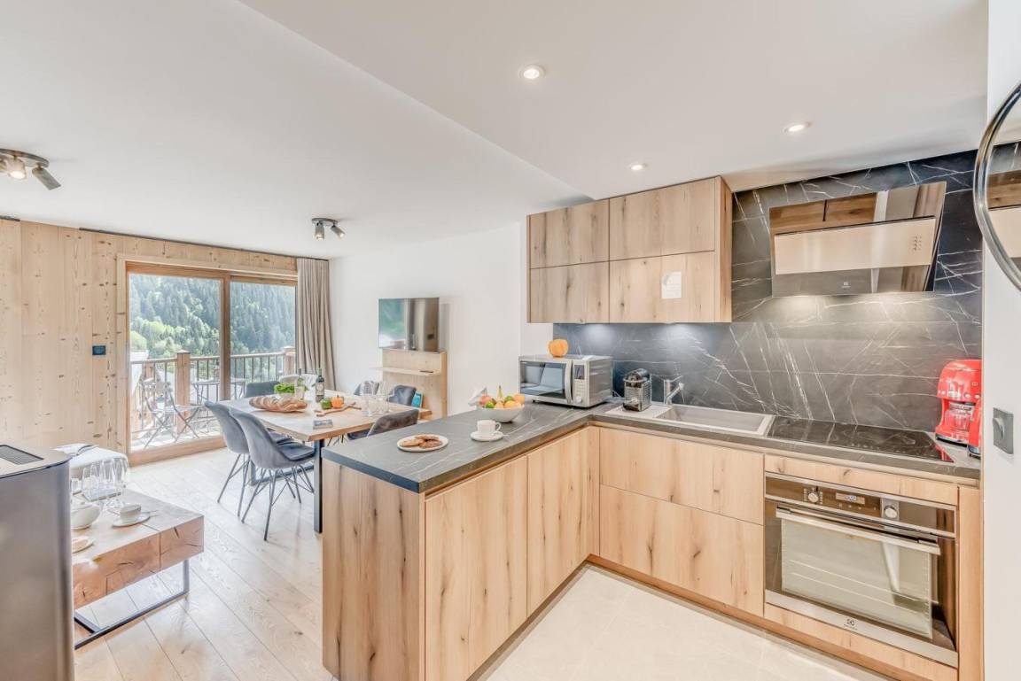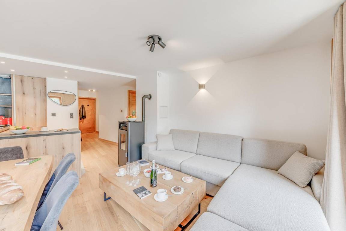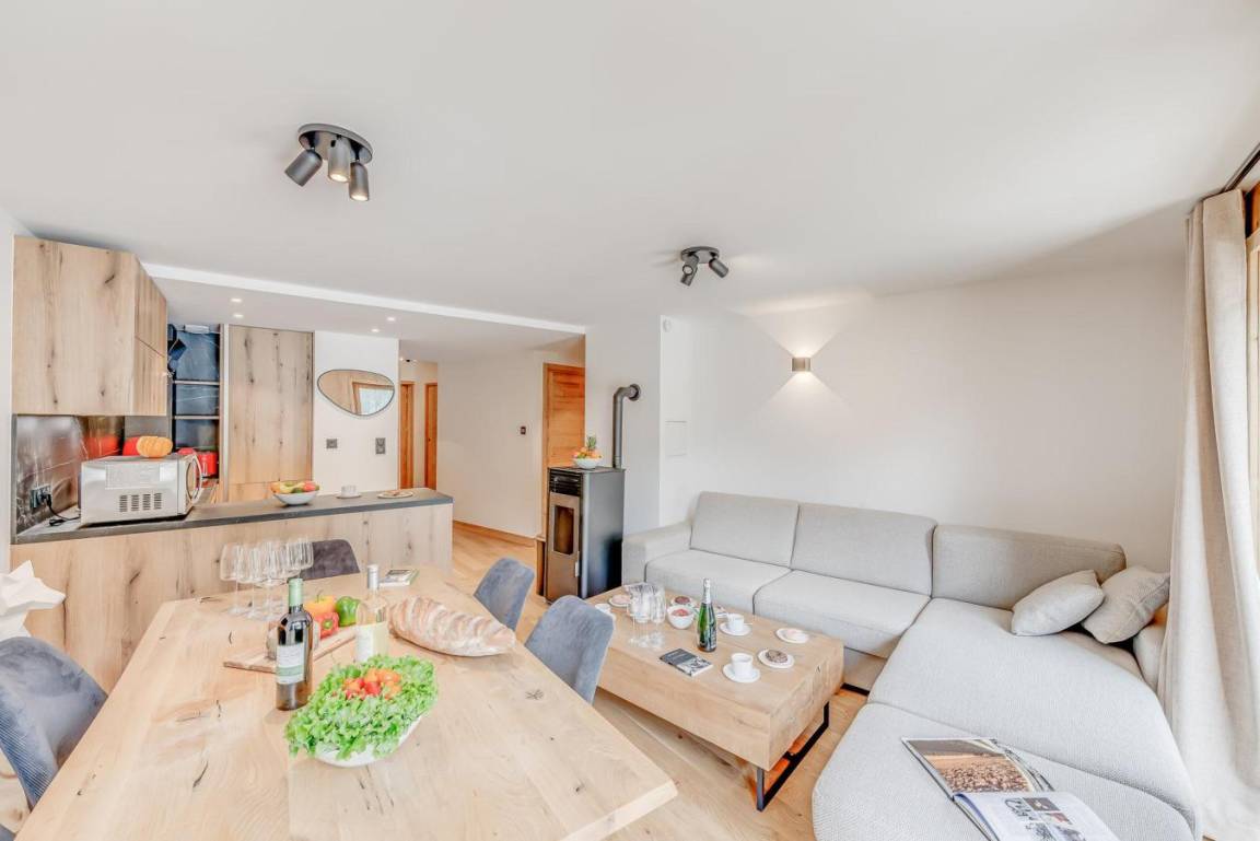 Fläche von ungefähr 54 m² enthält 1 m² unter 1,80 m. 1te Etage. Orientierung : Ost, Süd. Wohnzimmer mit Klappschlafcouch, . Schlafzimmer mit Doppelbett. offener Schlafbereich mit 2 Stockbetten. Kochnische mit Backofen, Geschirrspülmaschine, Mikrowellenherd, 2 Induktionsherdplatten, Kühl-Gefrier-Kombination. separates WC. Badezimmer mit Waschmaschine, Wäschetrockner. Balkon. Die oberen Betten sind nicht für Kinder unter 6 Jahren geeignet.