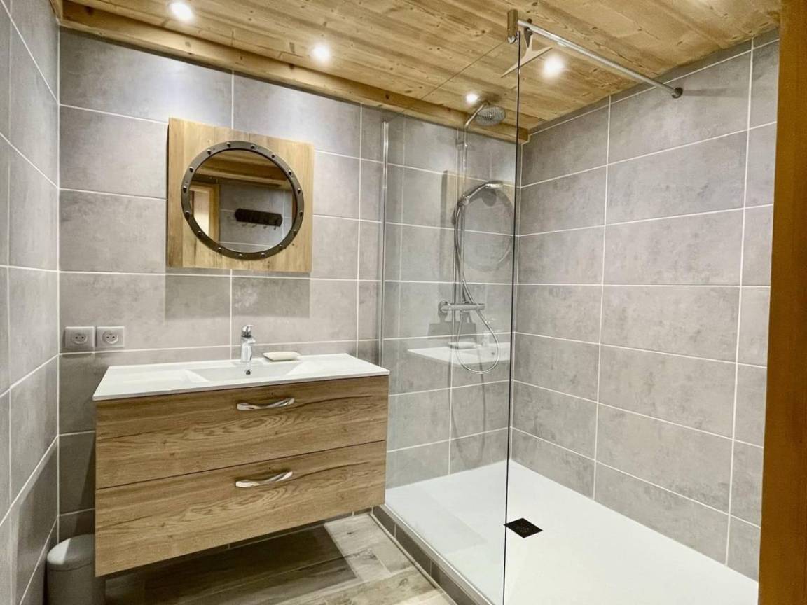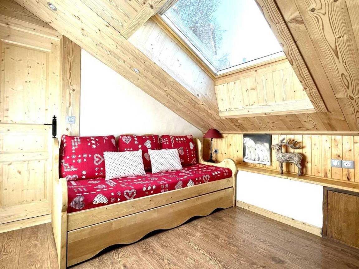 Die Club Alpina-Residenz ist ideal gelegen, 50 m von den Skiliften von Champagny-en-Vanoise entfernt. Das Dorfzentrum, das Tourismusbüro und die Geschäfte sind etwa 250 m entfernt (Zugang mit dem Aufzug möglich). Im Erdgeschoss der Residenz finden Sie ein Restaurant. Die Apartments bieten eine wunderschöne Bergdekoration, eine voll ausgestattete Küche und hochwertige Bettwäsche. Zum Entspannen nach einer Wanderung: inklusive Zugang zum beheizten Schwimmbad, zur Sauna, zum Hammam und zur Salzgrotte des Club Alpina. Fläche von ungefähr 73 m². 3te Etage. Orientierung : Süd-West. Niveau 0 : Wohnzimmer mit Sofa. Schlafzimmer mit Dusche, Doppelbett (160x190). Küche mit Wasserkocher, 2 Kaffeemaschinen (filtres et senseo), Backofen, Toaster, Geschirrspülmaschine, Mikrowellenherd, 2 Glaskeramikkochfelder, Kühl-Gefrier-Kombination. Waschräume mit Dusche. 2 separate WCs. Balkon. Niveau 1 : Mansardenzimmer mit Doppelbett (160x190). Mansardenzimmer mit Ausziehschlafcouch für 2 Personen (80x190). Mansardenzimmer mit 2 Einzelbetten (80x190).