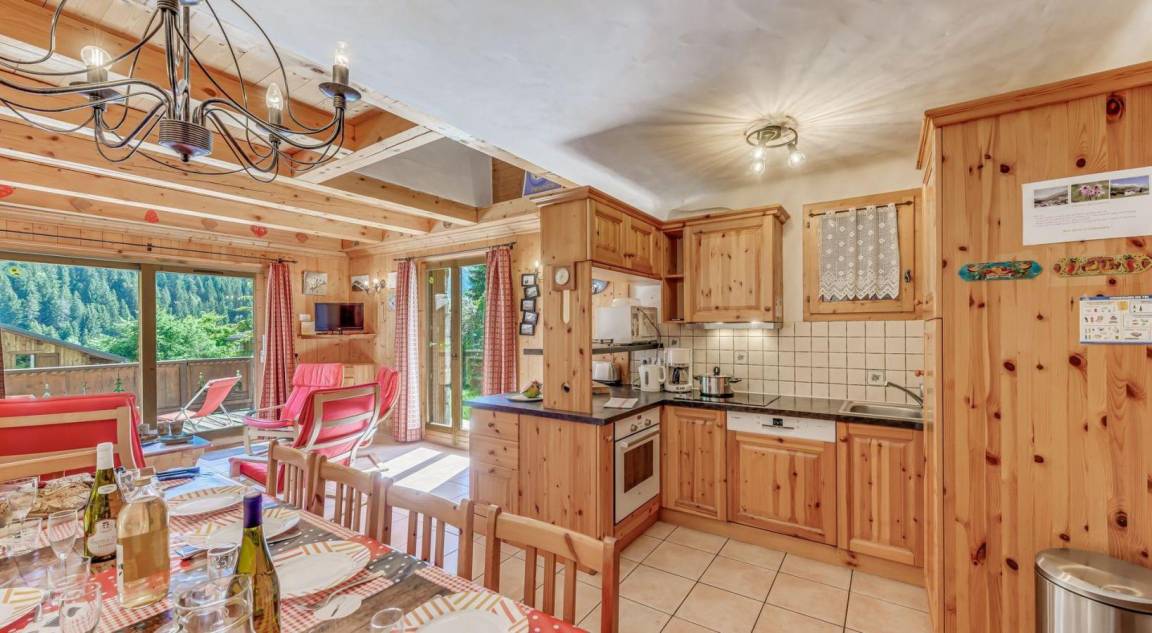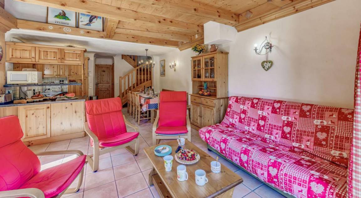 Das Chalet Les Soldanelles befindet sich in der Wohnanlage „Les Perrières". Diese geräumigen, nach Süden ausgerichteten Apartments bieten außergewöhnlichen Komfort, nur 700 Meter vom Zentrum von Champagny-en-Vanoise und den Skiliften entfernt (die Gondelbahn bietet Zugang zum Skigebiet La Plagne-Paradiski). Genießen Sie den atemberaubenden Blick auf die umliegenden Berge. Fläche von ungefähr 130 m² enthält 30 m² unter 1,80 m. Orientierung : Süd, West. Niveau 0 : Essbereich mit Bank, Stühle, Tisch. Wohnzimmer mit Sofa, Sessel, TV. Schlafzimmer mit Badewanne, Doppelbett (140*190). Küche mit Backofen, Geschirrspülmaschine, Mikrowellenherd, 3 Herdplatten, Kühl-Gefrier-Kombination. separates WC. Terrasse mit kleiner garten und kleiner Garten. Waschmaschine. Niveau 1 : 2 Schlafzimmer mit Dusche, Doppelbett (140*190). Schlafzimmer mit 2 Stockbetten (80*190). Waschräume mit Dusche. 2 separate WCs. Niveau 2 : mit 2 Einzelbetten (80*190). Die oberen Betten sind nicht für Kinder unter 6 Jahren geeignet.