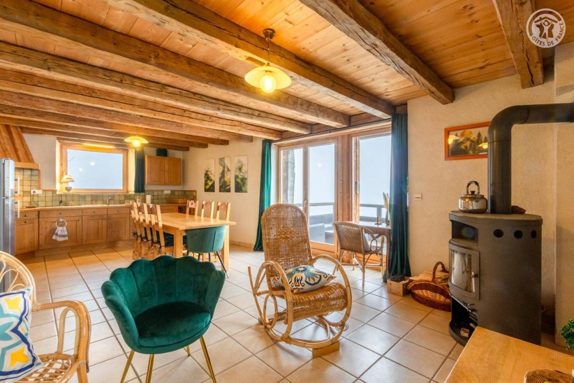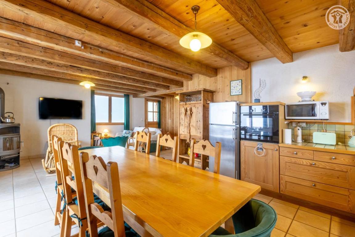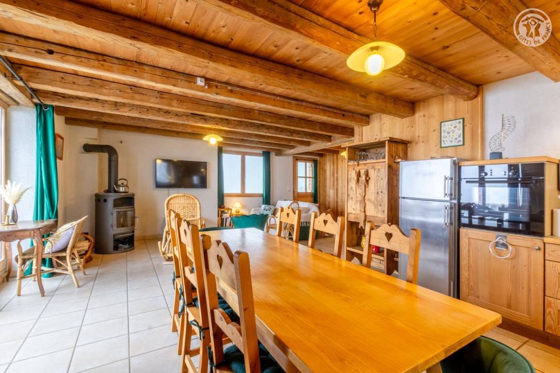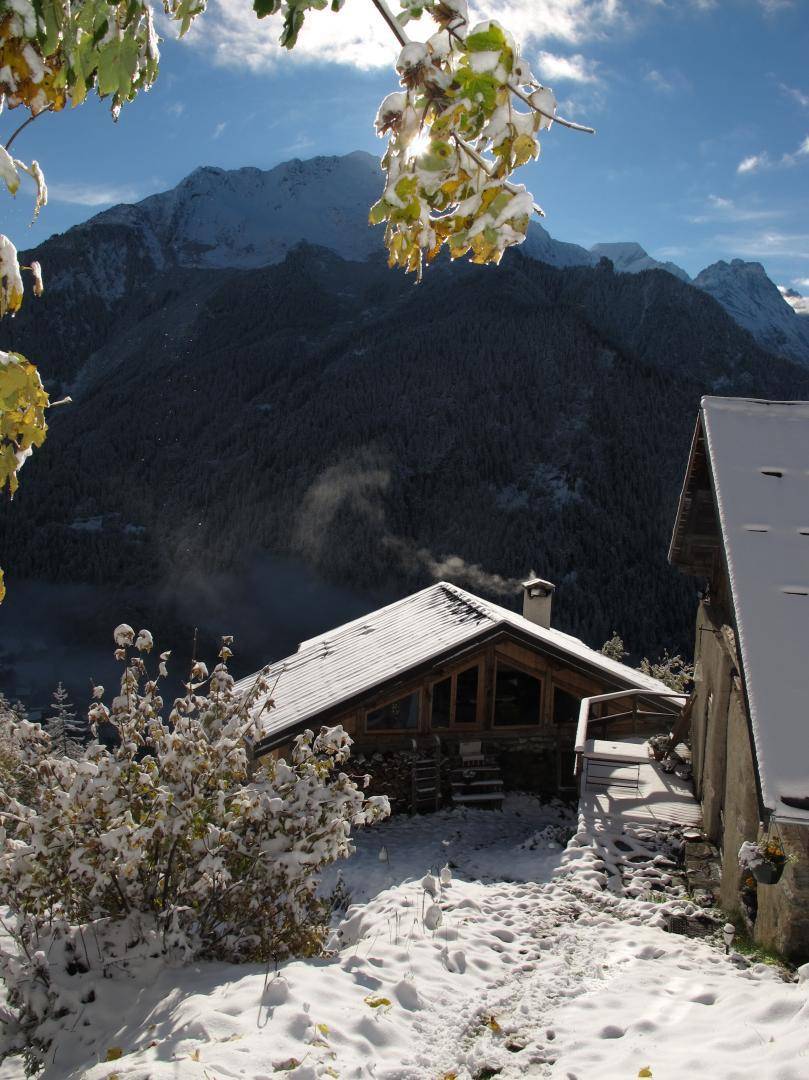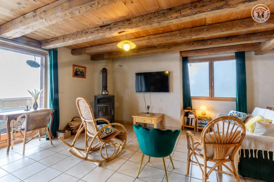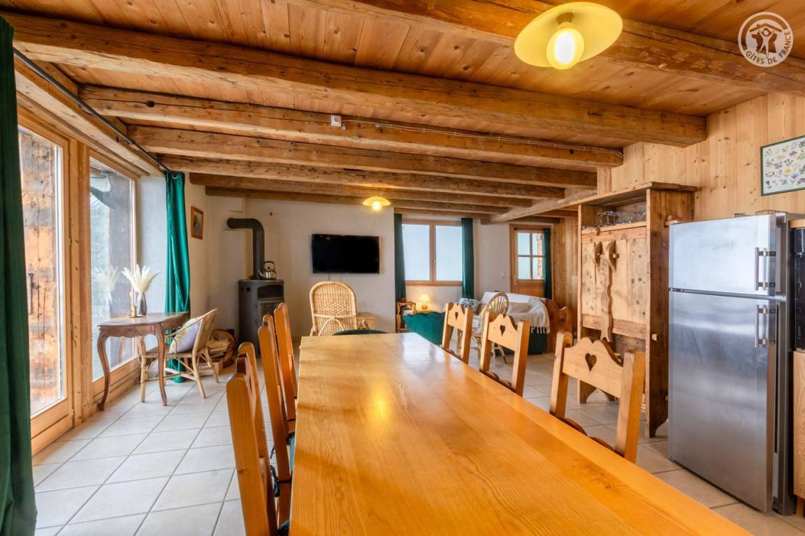 Alpenchalet am Berghang. Zugang zur Gîte über einen abfallenden Grasweg. Eingang, Wohnzimmer, Wohnzimmer, Küche mit Zugang zur Balkon-Terrasse, 2 Schlafzimmer (1 Doppelbett 180 x 200 cm und 1 Einzel-Etagenbett 90 x 190 cm / 1 Doppelbett 180 x 200 cm und 1 Einzel-Etagenbett 90 x 190 cm), Badezimmer (Dusche im italienischen Stil). ), separates WC. Zufahrt zum Chalet über eine befahrbare Straße über einige Kilometer. Es besteht die Möglichkeit, bei der An- und Abreise mit den Eigentümern zum Chalet hinaufzusteigen. Völlige Autonomie für die Dauer des Aufenthalts. Bettwäsche und Handtücher inklusive. Bei Bedarf Parkplatz 50 Meter oberhalb der Unterkunft.