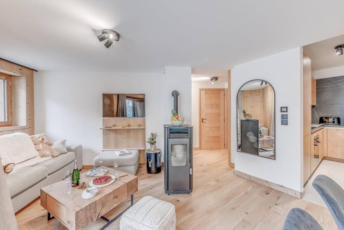 Fläche von ungefähr 57 m² enthält 1 m² unter 1,80 m. Erdgeschoss. Orientierung : Ost. Wohnzimmer mit Klappschlafcouch. Schlafzimmer mit Doppelbett. offener Schlafbereich mit 2 Stockbetten oder 2 Einzelbetten. Kochnische mit Backofen, Geschirrspülmaschine, Mikrowellenherd, 2 Induktionsherdplatten, Kühl-Gefrier-Kombination. Badezimmer mit Waschmaschine, Wäschetrockner. separates WC. Balkon. Die oberen Betten sind nicht für Kinder unter 6 Jahren geeignet.