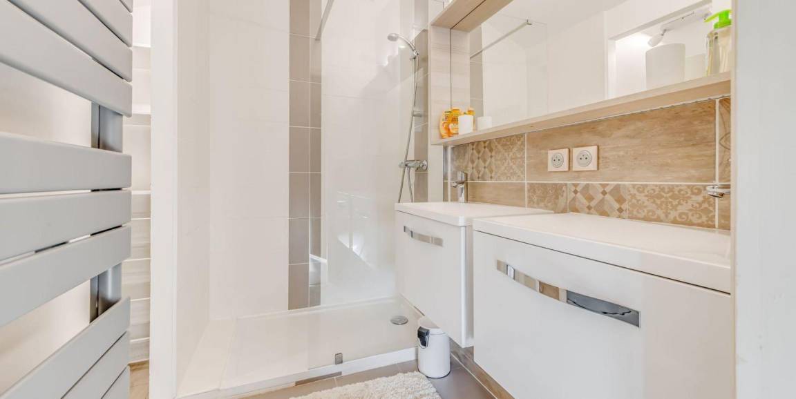Fläche von ungefähr 160 m². Orientierung : Ost, Süd, West. Niveau 0 : Wohnzimmer mit Sofa, Kamin. Schlafzimmer mit 2 Einzelbetten, Waschraum. Küche mit Backofen, Waschmaschine, Geschirrspülmaschine, Mikrowellenherd, 2 Induktionsherdplatten. separates WC. Terrasse. Niveau 1 : Schlafzimmer mit 2 Stockbetten. Schlafzimmer mit Doppelbett, Waschraum. 2 Schlafzimmer mit 2 Einzelbetten (90x200). separates WC. Badezimmer mit Badewanne, Dusche. Die oberen Betten sind nicht für Kinder unter 6 Jahren geeignet.