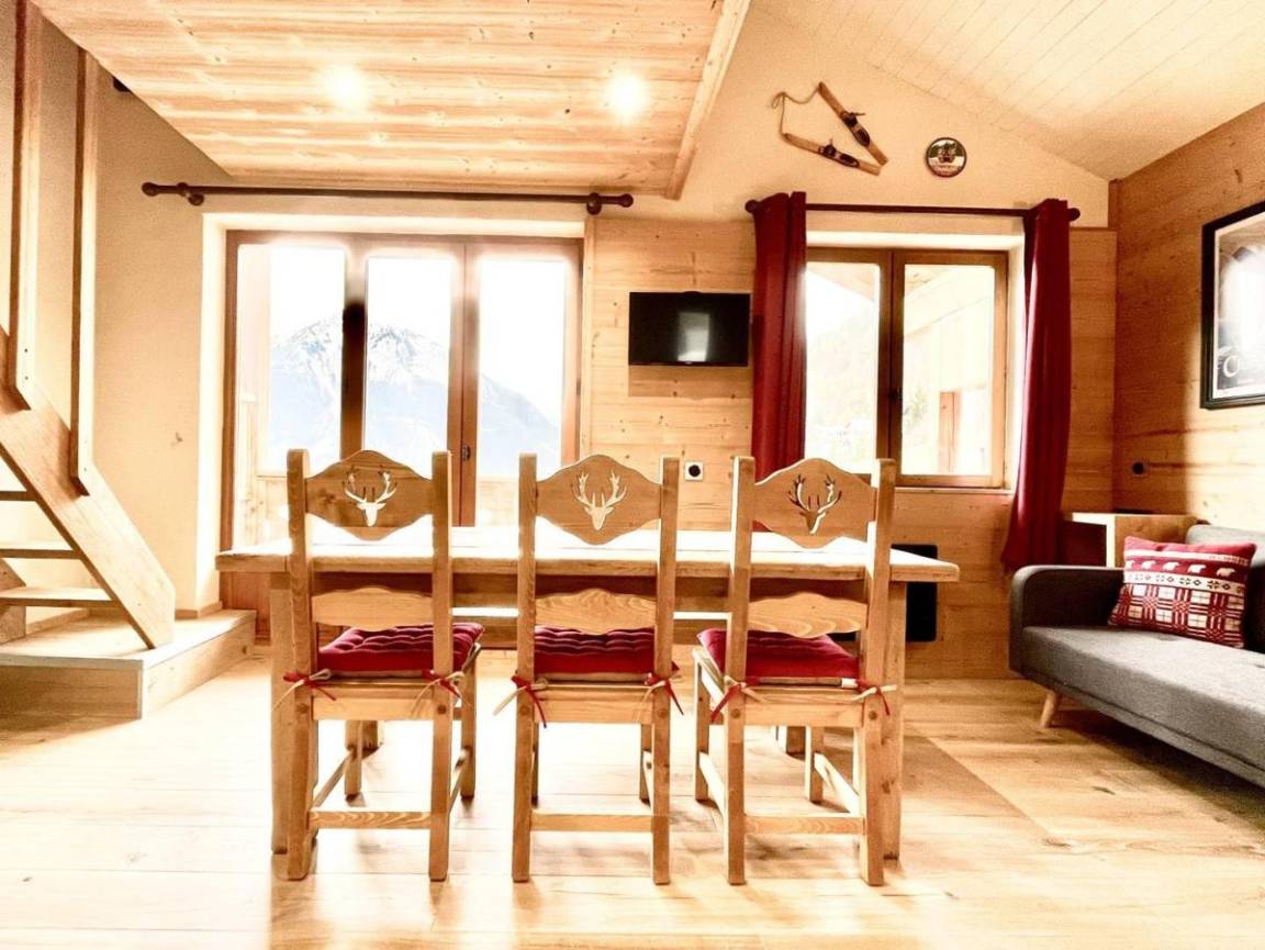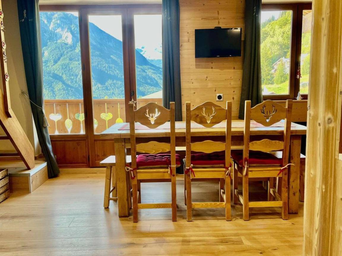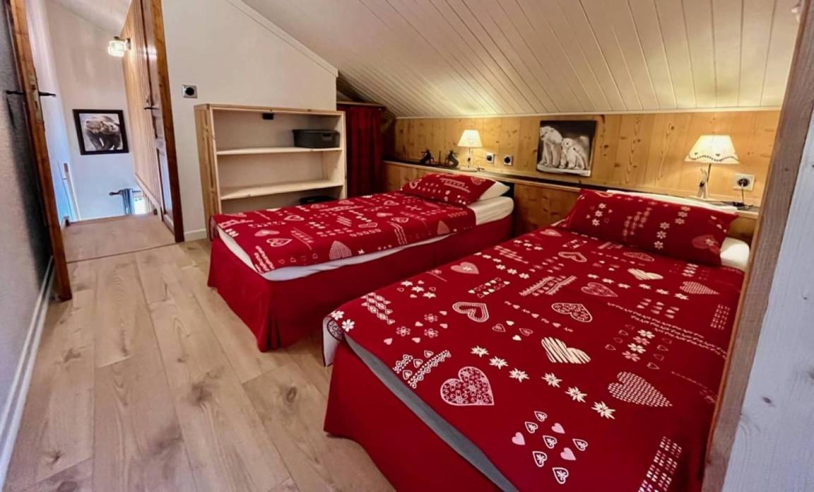 Die Club Alpina-Residenz ist ideal gelegen, 50 m von den Skiliften von Champagny-en-Vanoise entfernt. Das Dorfzentrum, das Tourismusbüro und die Geschäfte sind etwa 250 m entfernt (Zugang mit dem Aufzug möglich). Im Erdgeschoss der Residenz finden Sie ein Restaurant. Die Apartments bieten eine wunderschöne Bergdekoration, eine voll ausgestattete Küche und hochwertige Bettwäsche. Zum Entspannen nach einer Wanderung: inklusive Zugang zum beheizten Schwimmbad, zur Sauna, zum Hammam und zur Salzgrotte des Club Alpina. Fläche von ungefähr 55 m². 3te Etage. Orientierung : Süd-West. Niveau 0 : Wohnzimmer mit Bank, Sofa. offener Schlafbereich mit Klappschlafcouch. Schlafzimmer mit Doppelbett. Küche mit 2 Kaffeemaschinen, Backofen, Geschirrspülmaschine, Mikrowellenherd, 2 Herdplatten, Kühl-Gefrier-Kombination. Badezimmer mit Badewanne. separates WC. Balkon. Niveau 1 : Mansardenzimmer mit 2 Einzelbetten. Mansardenzimmer mit 2 Einzelbetten, Waschraum.