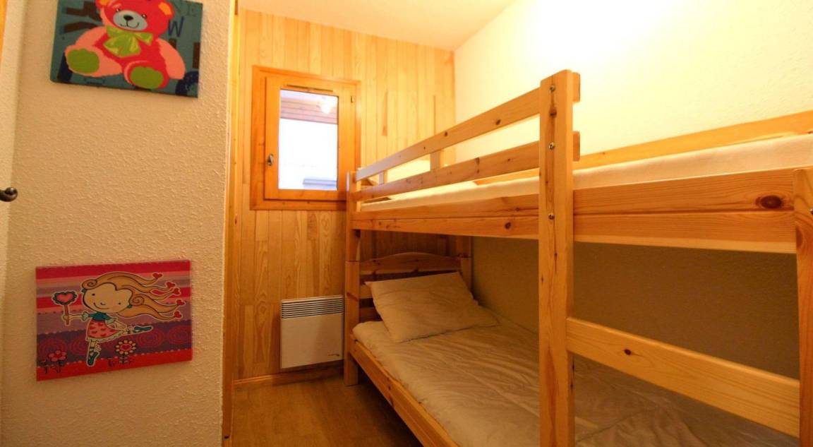 Fläche von ungefähr 65 m². Erdgeschoss. Orientierung : Süd, West. Wohnzimmer. Schlafzimmer mit Doppelbett. Schlafzimmer mit 4 Stockbetten. Schlafzimmer mit 2 Stockbetten. Kochnische mit Wasserkocher, Kaffeemaschine, Backofen, Toaster, Geschirrspülmaschine, Mikrowellenherd, Herdplatten, Kühlschrank. Waschräume mit Dusche. Badezimmer mit Badewanne. separates WC. Balkon. Terrasse mit Gartentisch und -stühle. Die oberen Betten sind nicht für Kinder unter 6 Jahren geeignet.