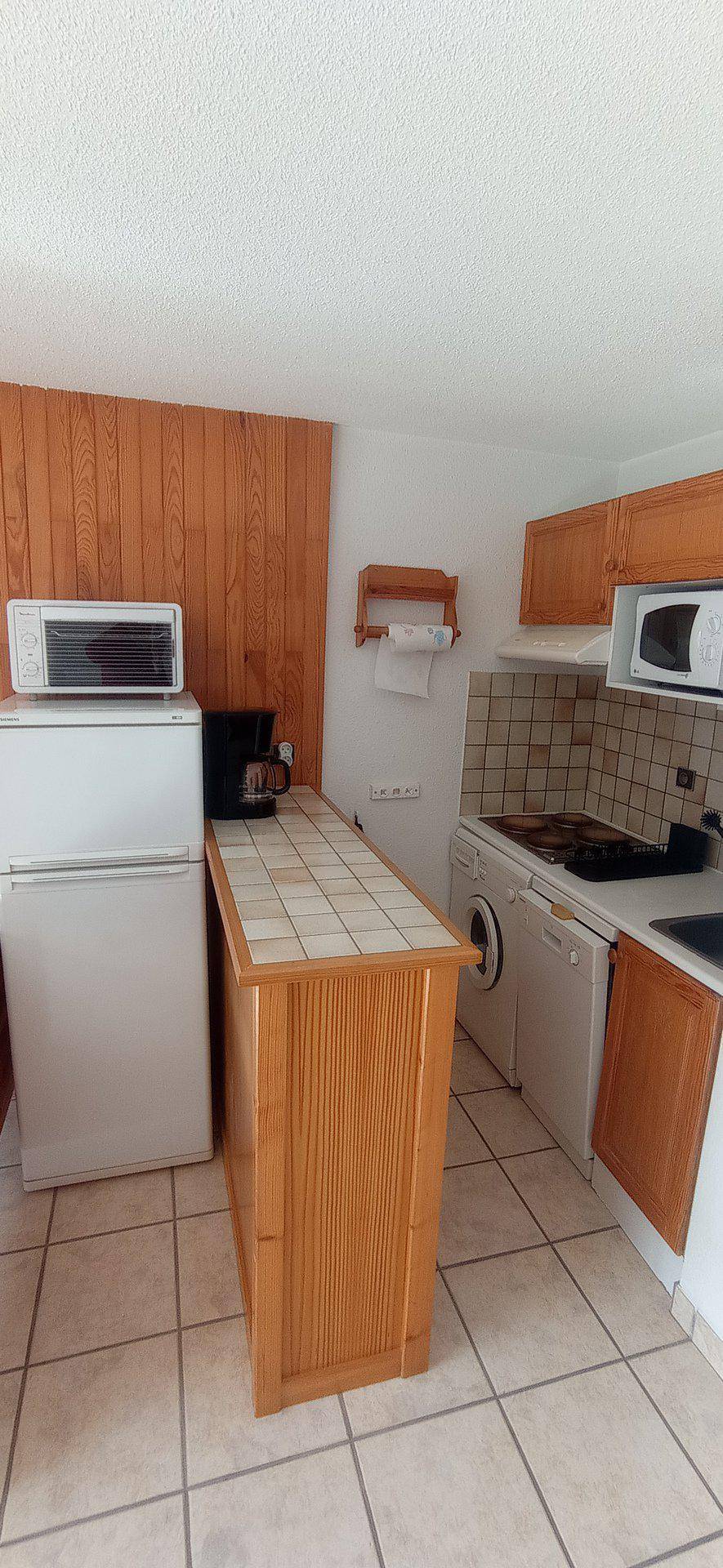 Le Chardonnet ist eine schöne Residenz im savoyischen Stil. Sie steht perfekt im Viertel Les Hauts du Crey 200 Meter entfernt von der Seilbahn und ganz in der Nähe der Station Champgny-en-Vanoise in den französischen Nordalpen. Ausrichtung nach Süden mit einer sehr schöner Aussicht auf dem Dorf und den Bergen. Fläche von ungefähr 32 m². 3te Etage. Orientierung : Süd. Blick offene, dorf und Berg. Diele mit 2 Klappbetten. Wohnzimmer mit Klappschlafcouch (140x190). Schlafzimmer mit Doppelbett (160x190), schiebetüren. Kochnische mit Wasserkocher, Kaffeemaschine, Backofen, Toaster, Geschirrspülmaschine, Mikrowellenherd, 2 elektronische Herdplatten, Kühl-Gefrier-Kombination. Waschräume mit Dusche, Waschbecken. separates WC. Balkon.
