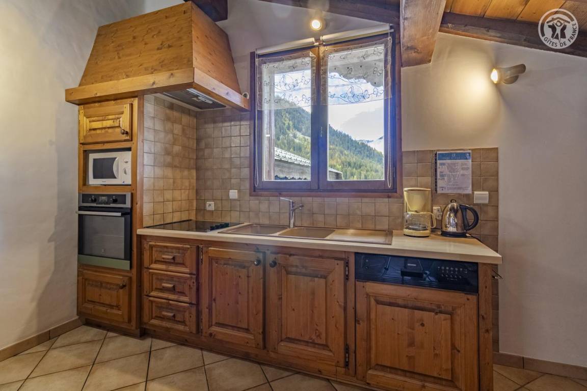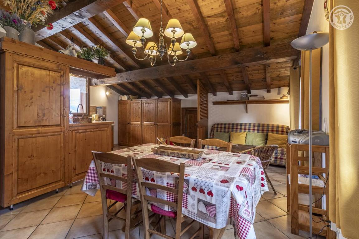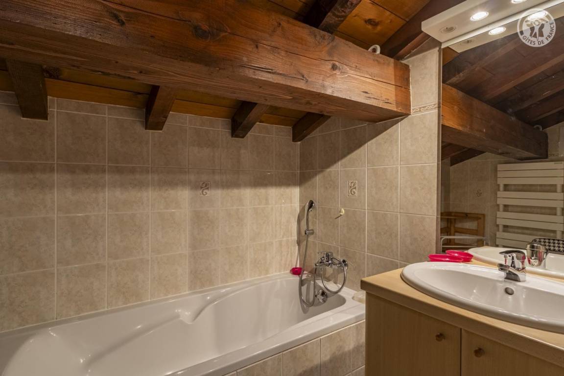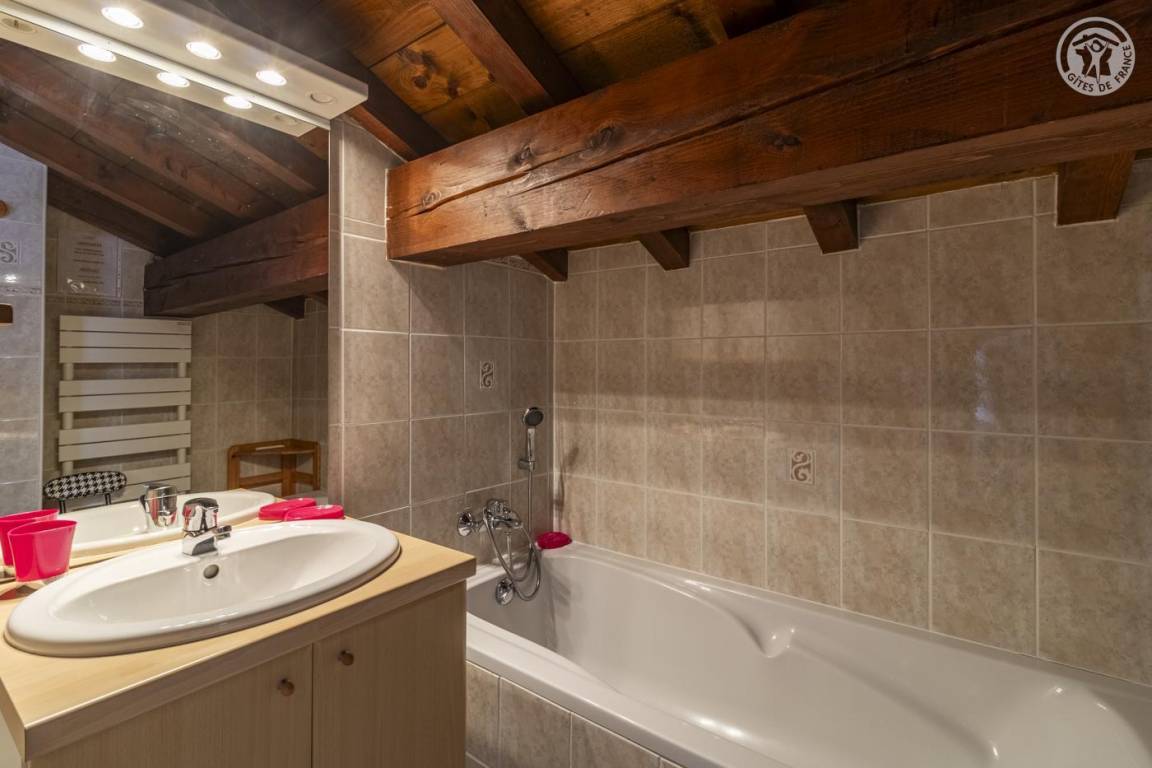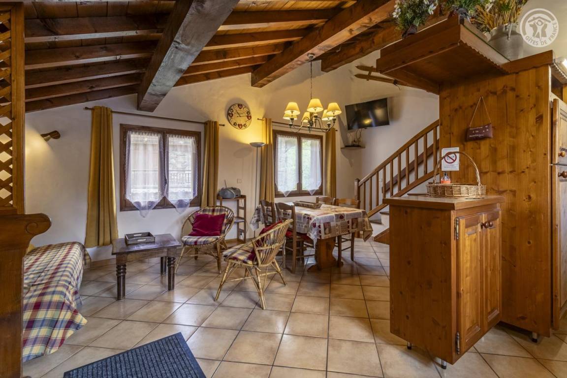 Ferienhaus im Haus des Eigentümers. 1. + 2. Etage: Wohnzimmer-Küchen-Lounge-Bereich. WLAN-Internetverbindung, 2 Schlafzimmer mit eigenem Bad (1 Doppelbett / 2 Einzelbetten). Kleines Grundstück. Gesamtgrundfläche: 62m² inklusive Dachgeschossflächen. Skigebiet Champagny/la Plagne 400 m. Thermalbäder von Brides les Bains. Gewässer + Freizeitzentrum 5 km. 400 m entfernt, Entspannungsbereich (Spa, Sauna, Hamam) und beheiztes Hallenbad im Sommer und Winter.