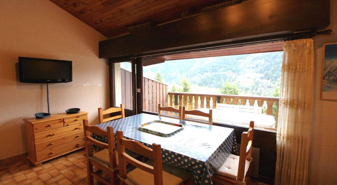 50 Meter entfernt von der Gondelbahn und 2 Fußminuten entfernt vom Zentrum der Stadt Champagny wurde les Hauts de Planchamp von einem Ensemble von Chalets und Wohnungen gebildet. Die nach Süden ausgerichteten Terrassen bieten einen Rundblick auf dem Dorf und den Bergen. Fläche von ungefähr 37 m². 2te Etage. Orientierung : Ost, Süd. Wohnzimmer mit einfache Klappschlafcouch. Schlafzimmer mit Doppelbett. Mansardenzwischengeschoss (-1,80 m) mit 2 Einzelbetten. Kochnische mit Backofen, Waschmaschine, Geschirrspülmaschine, Mikrowellenherd, 2 Herdplatten, Kühlschrank. Badezimmer mit Badewanne. separates WC.