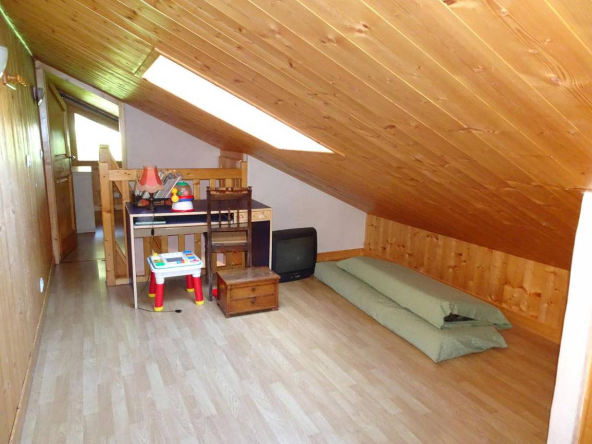 Fläche von ungefähr 142 m² enthält 40 m² unter 1,80 m. 1te Etage. Orientierung : Ost, Süd. Wohnzimmer mit Kamin. 2 Schlafzimmer mit Doppelbett. 2 Mansardenzwischengeschosse (-1,80 m) mit Leiter, 2 Einzelbetten. Schlafzimmer mit 4 Stockbetten. Kochnische mit Backofen, Waschmaschine, Geschirrspülmaschine, Mikrowellenherd, Induktionsherdplatten, Kühlschrank, Kühl-Gefrier-Kombination. 2 separate WCs. Waschräume mit Dusche, WC. Waschräume mit Dusche. Badezimmer mit Badewanne, WC. Terrasse. Die oberen Betten sind nicht für Kinder unter 6 Jahren geeignet.