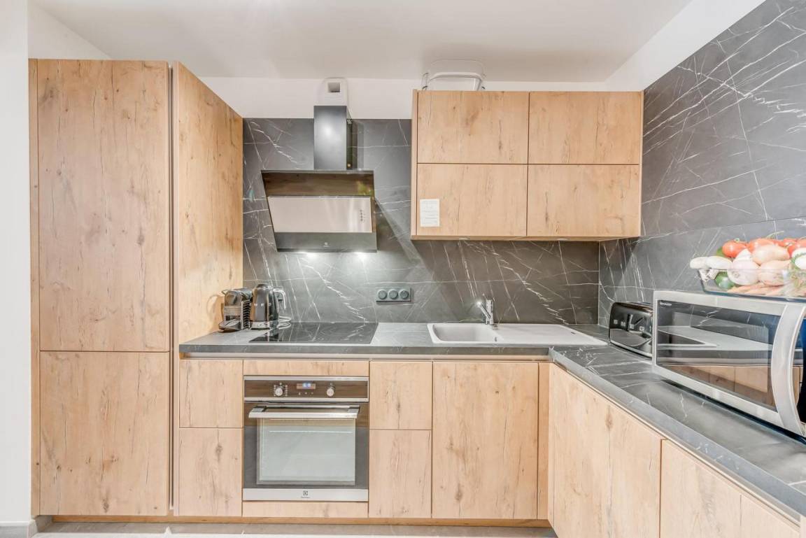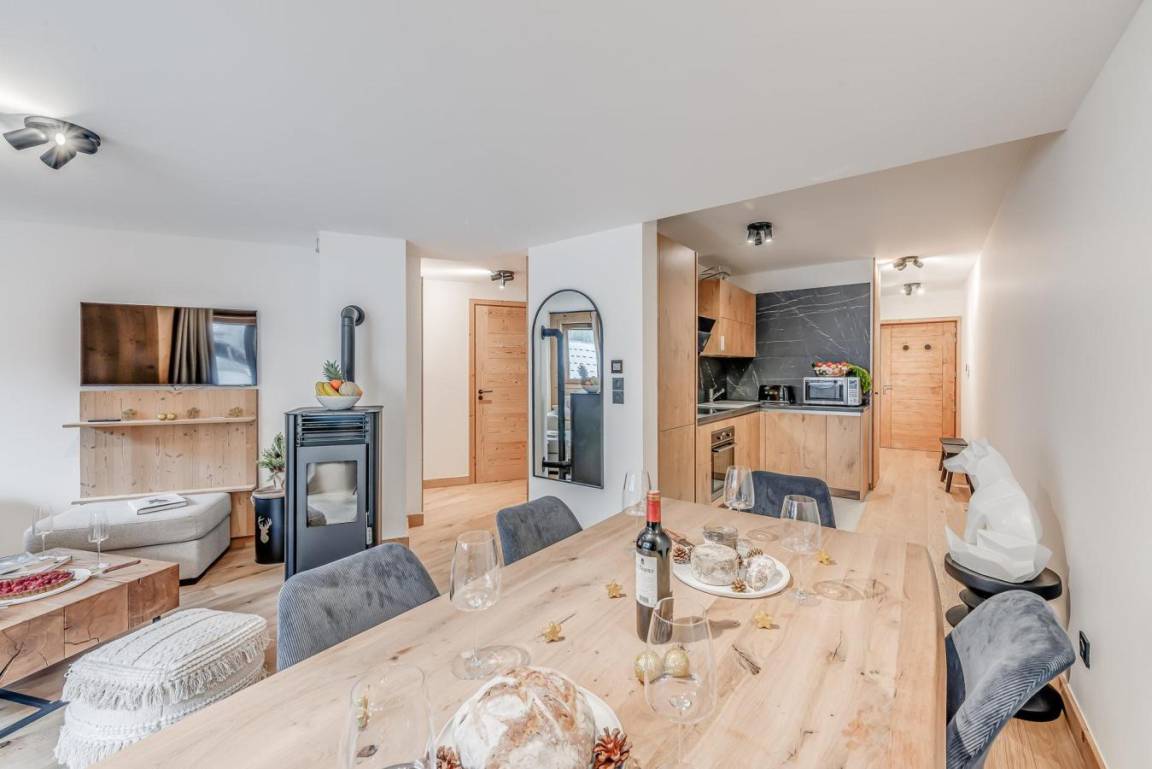 Fläche von ungefähr 57 m² enthält 1 m² unter 1,80 m. Erdgeschoss. Orientierung : Ost. Wohnzimmer mit Klappschlafcouch. Schlafzimmer mit Doppelbett. offener Schlafbereich mit 2 Stockbetten oder 2 Einzelbetten. Kochnische mit Backofen, Geschirrspülmaschine, Mikrowellenherd, 2 Induktionsherdplatten, Kühl-Gefrier-Kombination. Badezimmer mit Waschmaschine, Wäschetrockner. separates WC. Balkon. Die oberen Betten sind nicht für Kinder unter 6 Jahren geeignet.
