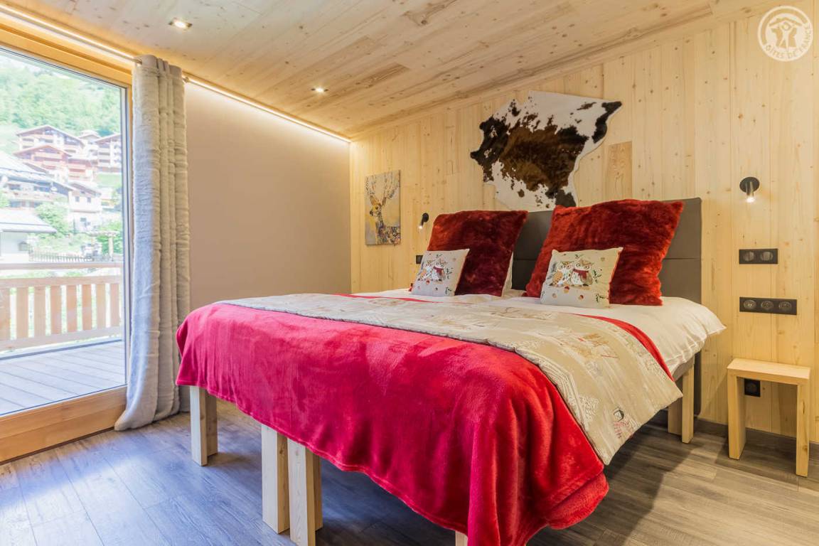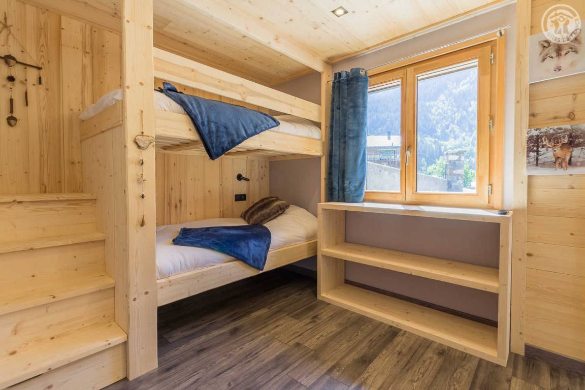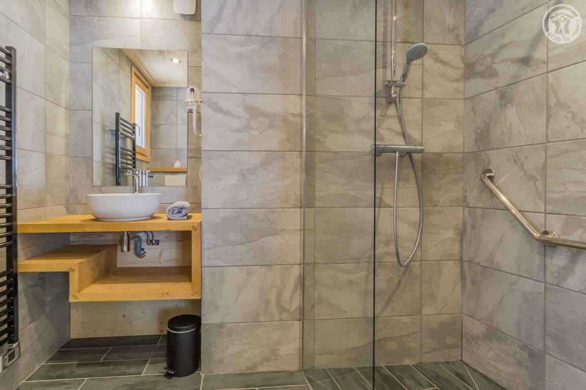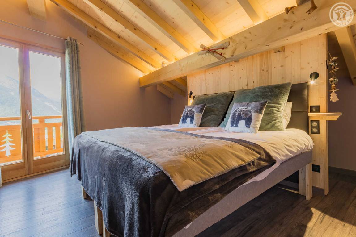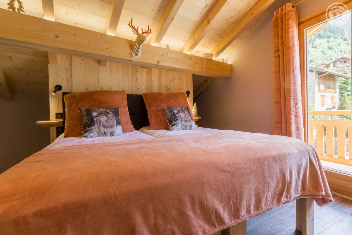 Unabhängiges Chalet mit Südterrasse mit Blick auf das Dorf und die Berge ohne Gegenüber. Im Erdgeschoss: 1 Schlafzimmer für 4 Personen (4 Einzelbetten, davon 2 Einzelbetten und 2 Etagenbetten), 1 Schlafzimmer für 2 Personen. Diese beiden Schlafzimmer verfügen über ein eigenes Bad mit WC und einen Fernseher. Wellnessbereich mit Sauna, Hammam, Schottische Dusche, Holzbadewanne. Obergeschoss: voll ausgestattete Einbauküche Wohnzimmer offen zum Esszimmer und Wohnzimmer, 1 separates WC, 1 Schlafzimmer für Personen mit eingeschränkter Mobilität zugänglich von der Terrasse mit Duschbad (angepasste Dusche und WC). Im zweiten Stock: 3 Schlafzimmer (2 Einzelbetten mit eigenem Bad + WC) mit Zugang zum Balkon. Privater und überdachter Parkplatz auf dem Grundstück.