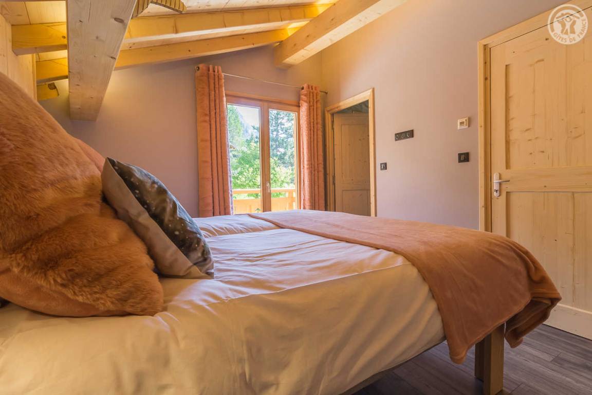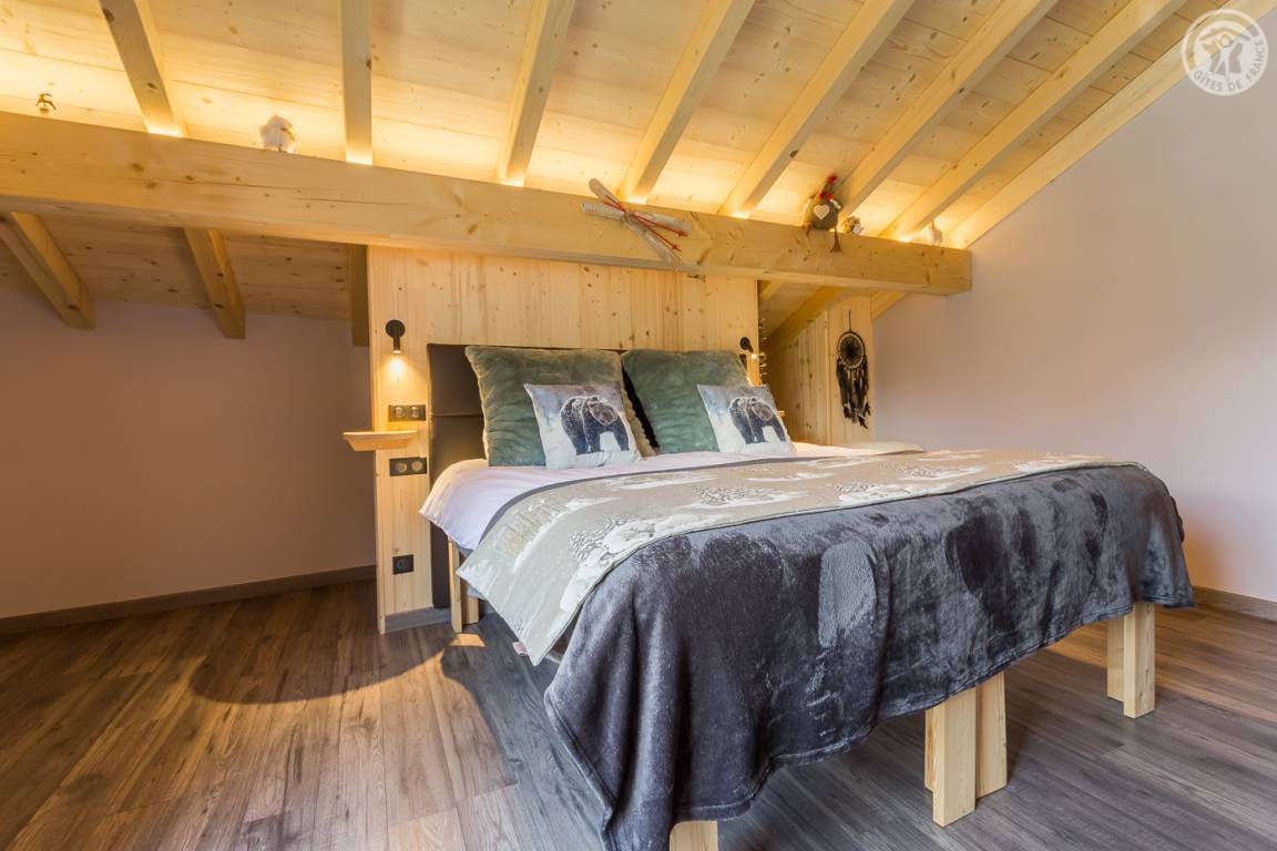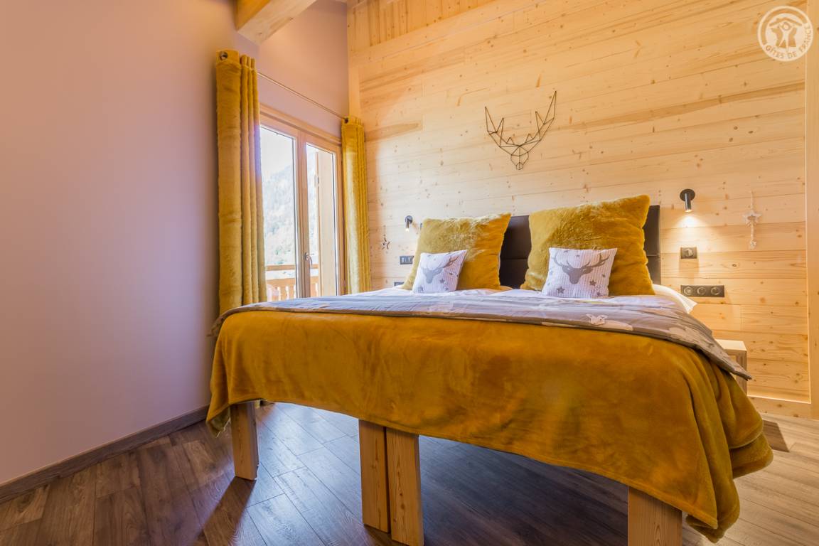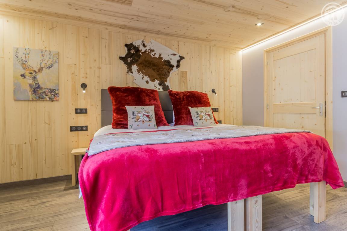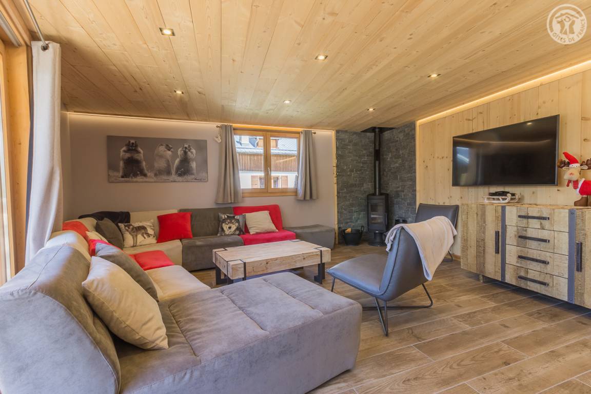 Unabhängiges Chalet mit Südterrasse mit Blick auf das Dorf und die Berge ohne Gegenüber. Im Erdgeschoss: 1 Schlafzimmer für 4 Personen (4 Einzelbetten, davon 2 Einzelbetten und 2 Etagenbetten), 1 Schlafzimmer für 2 Personen. Diese beiden Schlafzimmer verfügen über ein eigenes Bad mit WC und einen Fernseher. Wellnessbereich mit Sauna, Hammam, Schottische Dusche, Holzbadewanne. Obergeschoss: voll ausgestattete Einbauküche Wohnzimmer offen zum Esszimmer und Wohnzimmer, 1 separates WC, 1 Schlafzimmer für Personen mit eingeschränkter Mobilität zugänglich von der Terrasse mit Duschbad (angepasste Dusche und WC). Im zweiten Stock: 3 Schlafzimmer (2 Einzelbetten mit eigenem Bad + WC) mit Zugang zum Balkon. Privater und überdachter Parkplatz auf dem Grundstück.