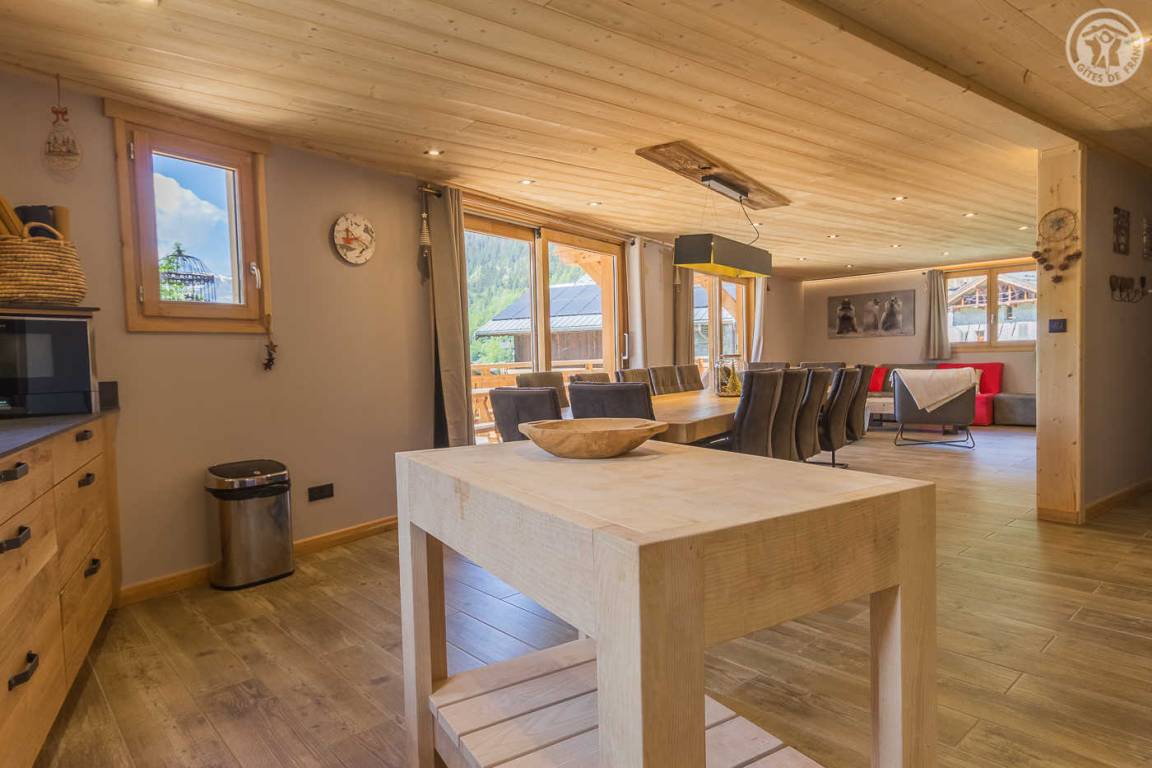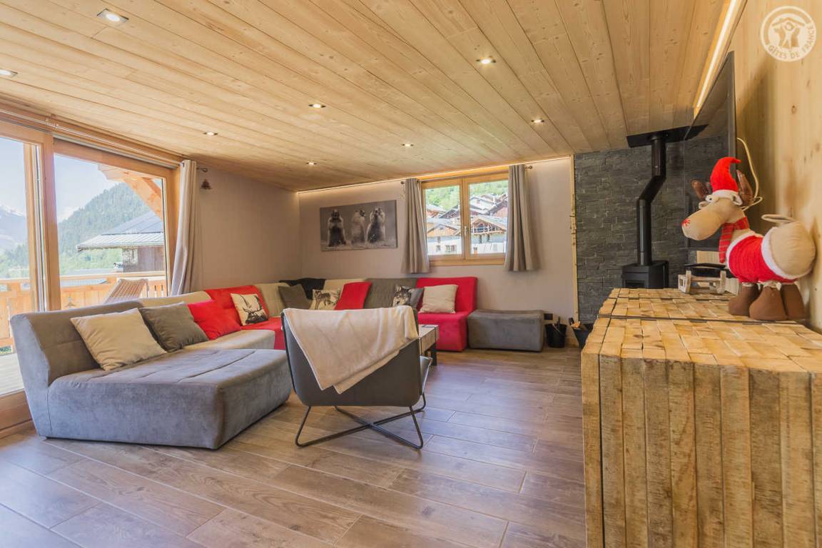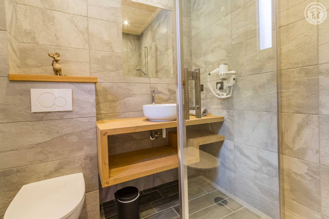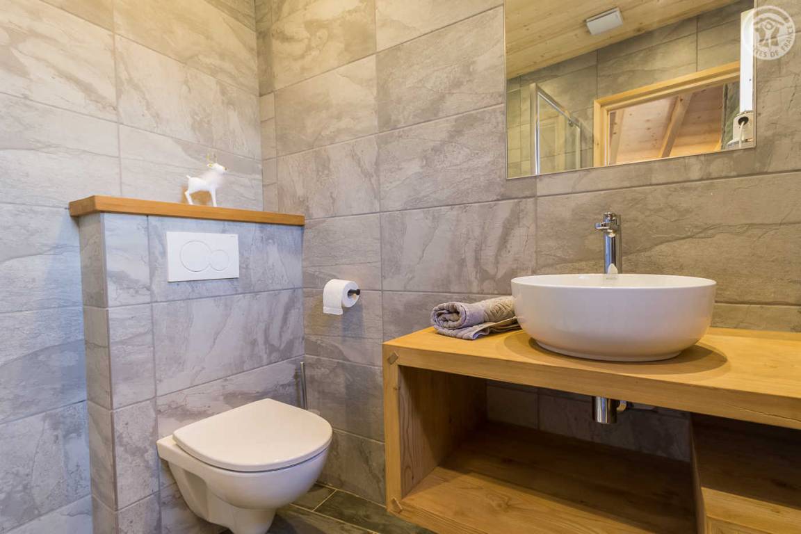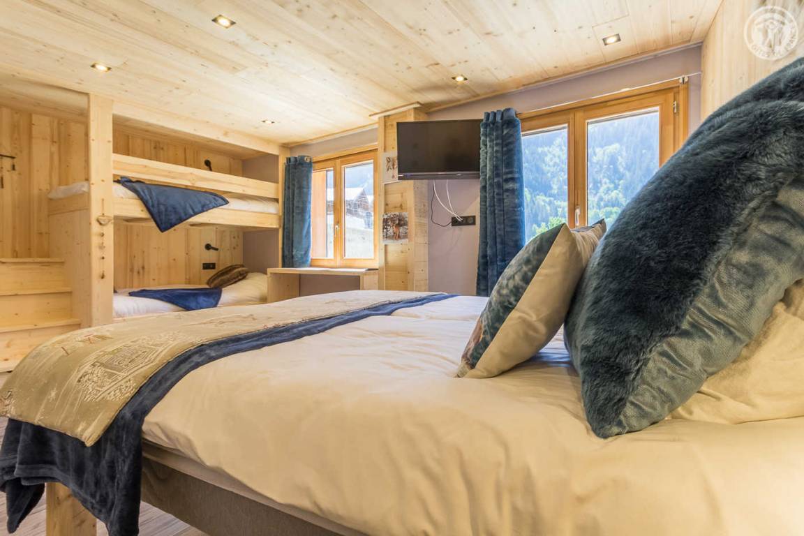 Unabhängiges Chalet mit Südterrasse mit Blick auf das Dorf und die Berge ohne Gegenüber. Im Erdgeschoss: 1 Schlafzimmer für 4 Personen (4 Einzelbetten, davon 2 Einzelbetten und 2 Etagenbetten), 1 Schlafzimmer für 2 Personen. Diese beiden Schlafzimmer verfügen über ein eigenes Bad mit WC und einen Fernseher. Wellnessbereich mit Sauna, Hammam, Schottische Dusche, Holzbadewanne. Obergeschoss: voll ausgestattete Einbauküche Wohnzimmer offen zum Esszimmer und Wohnzimmer, 1 separates WC, 1 Schlafzimmer für Personen mit eingeschränkter Mobilität zugänglich von der Terrasse mit Duschbad (angepasste Dusche und WC). Im zweiten Stock: 3 Schlafzimmer (2 Einzelbetten mit eigenem Bad + WC) mit Zugang zum Balkon. Privater und überdachter Parkplatz auf dem Grundstück.