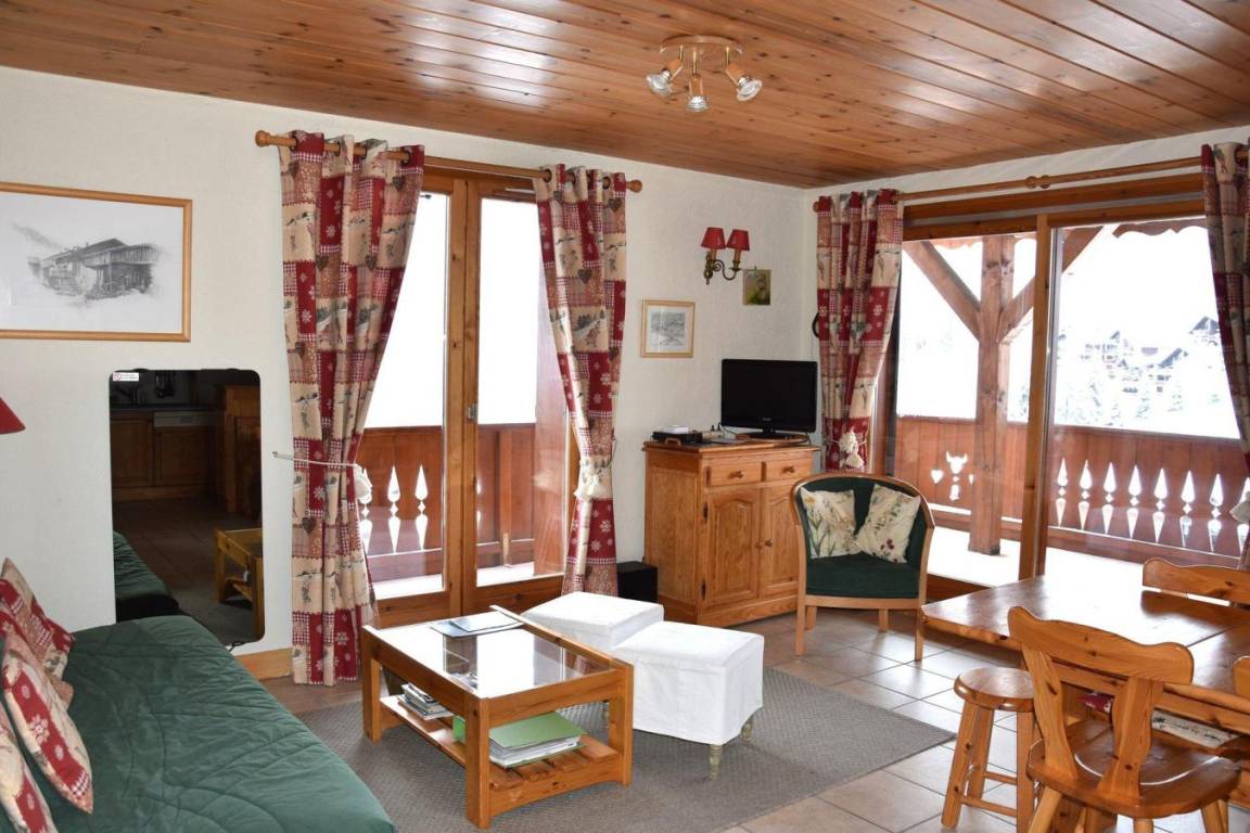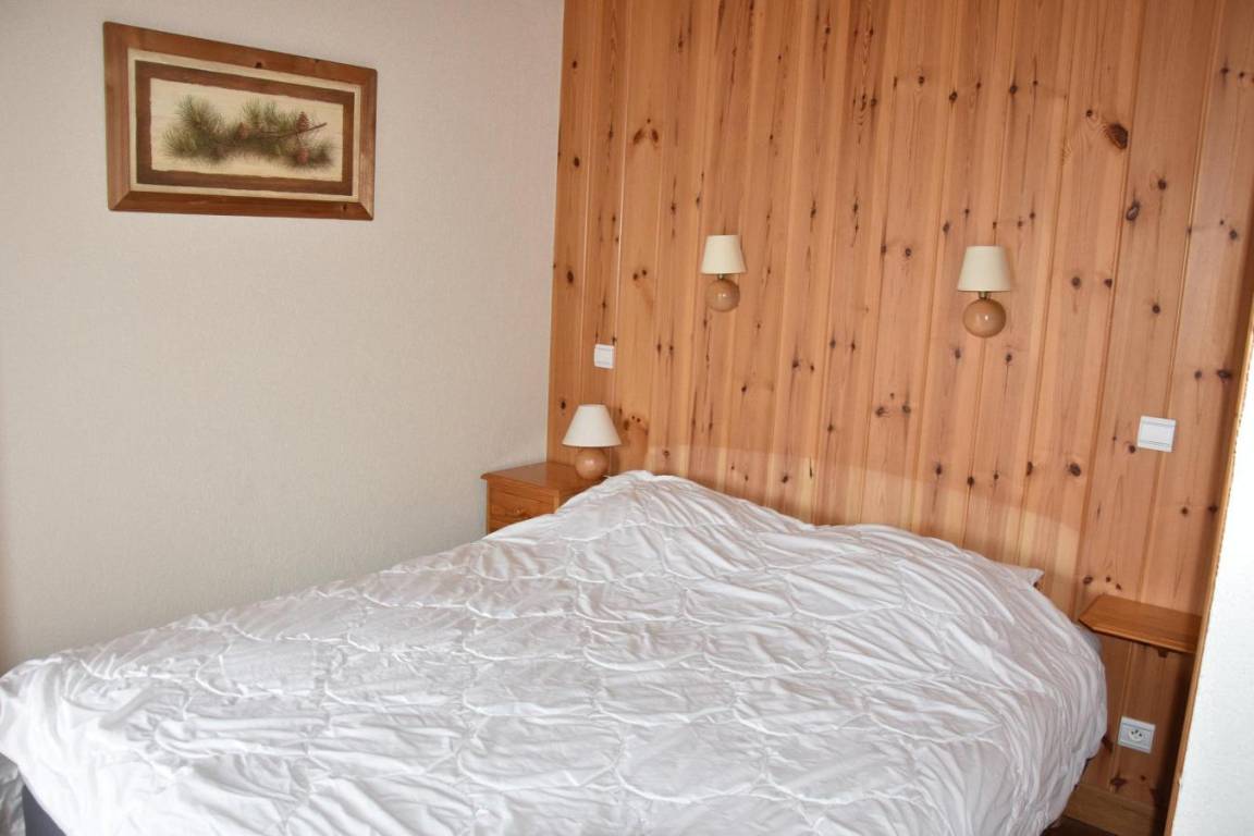 Fläche von ungefähr 60 m². 5te Etage. Orientierung : Süd. Blick berg und Dorf. Wohnzimmer mit Sofa. Schlafzimmer mit Doppelbett (160). Schlafzimmer mit 2 Stockbetten. Schlafzimmer mit 2 Einzelbetten, Waschraum. Kochnische mit Backofen, Geschirrspülmaschine, Mikrowellenherd, elektronische Herdplatten, Kühlschrank. Badezimmer mit Badewanne, Waschbecken, Waschmaschine. separates WC. Terrasse. Die oberen Betten sind nicht für Kinder unter 6 Jahren geeignet.