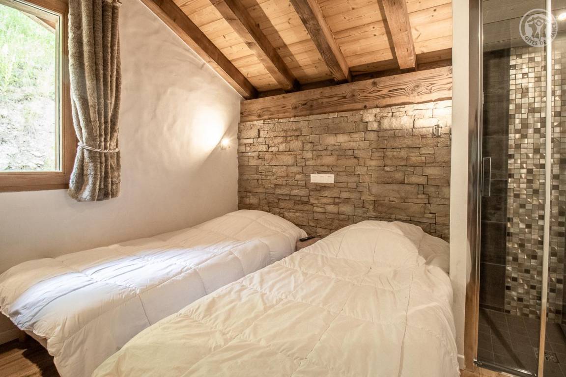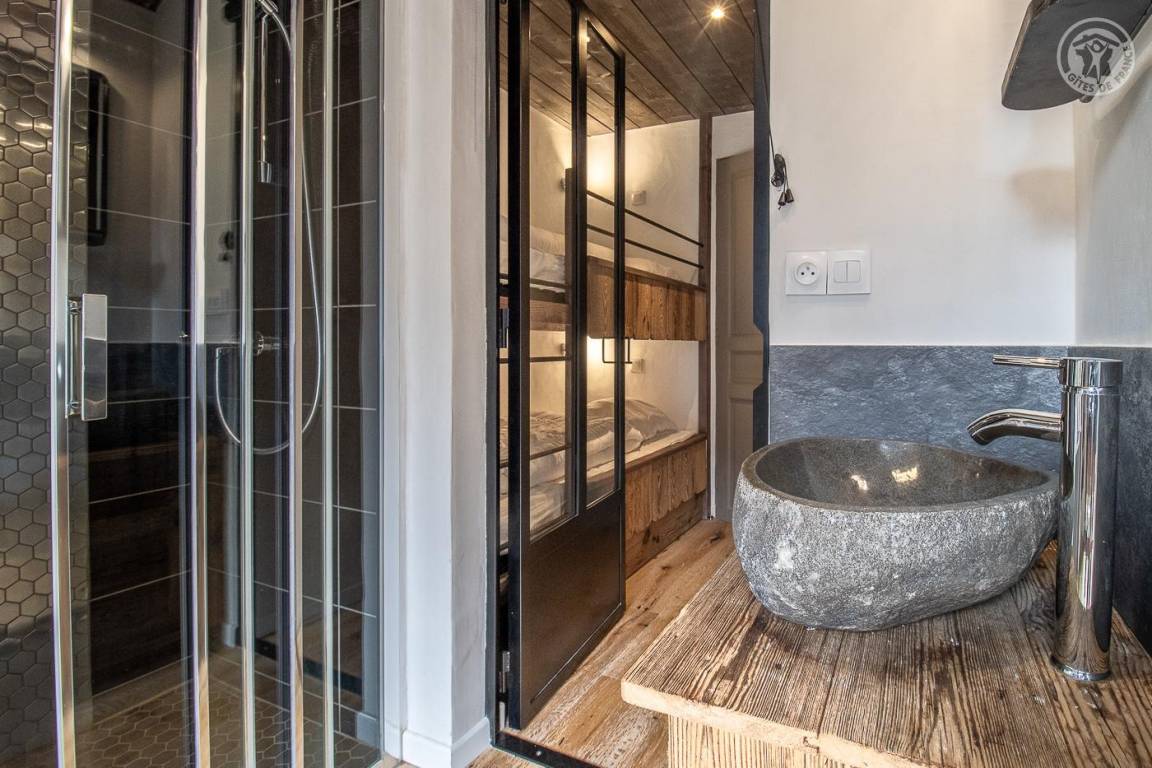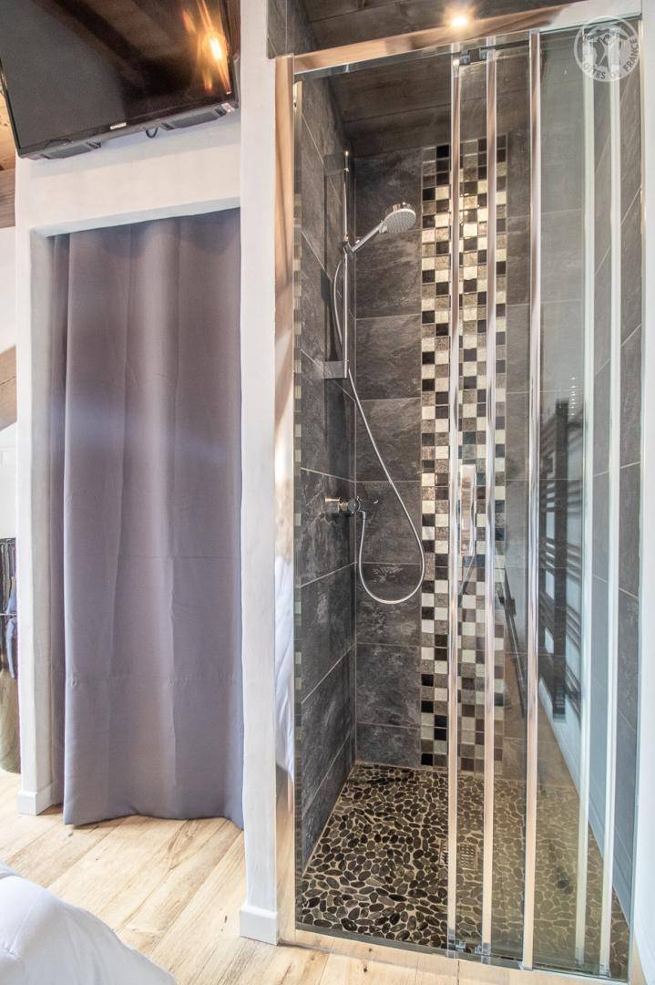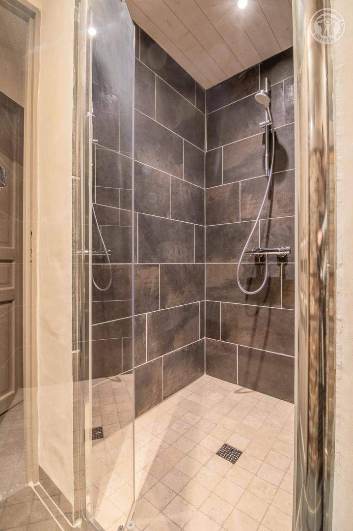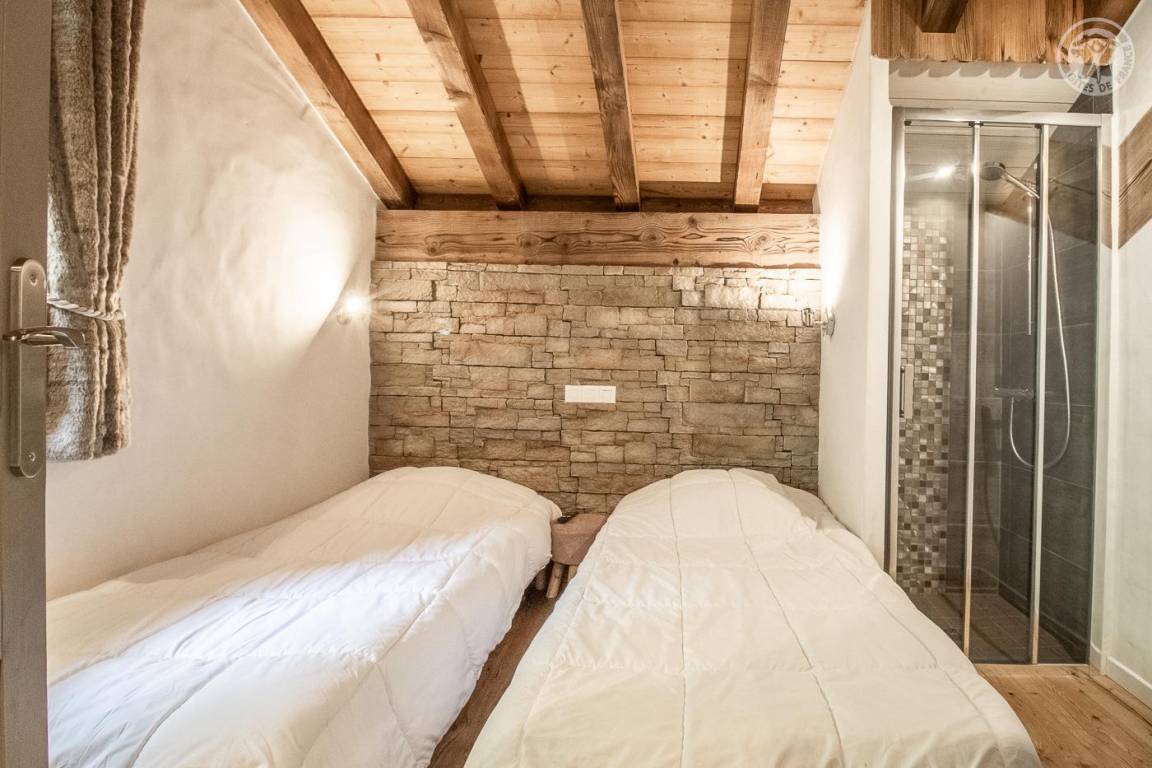 Chalet neben einem Hauptwohnsitz. Auf 3 Ebenen: Eingang durch die große Garage, Wellnessbereich (Sauna, Dusche), Waschküche (Waschmaschine). Im 1. Stock: Wohnzimmer-Küche-Wohnzimmer mit Balkon-Terrasse, WC. Im 2. Stock: 1 Schlafzimmer mit Balkon und Dusche (1 Doppelbett 160x200 cm und Schlafbereich mit 2 Etagenbetten), 2 Schlafzimmer mit Dusche, Waschbecken und TV (2 Etagenbetten / 1 Doppelbett 140x190 cm), separates WC . 36m² große Garage zum Abstellen mehrerer Fahrzeuge, Unterstellen von Fahrrädern, Motorrädern und Skiern.