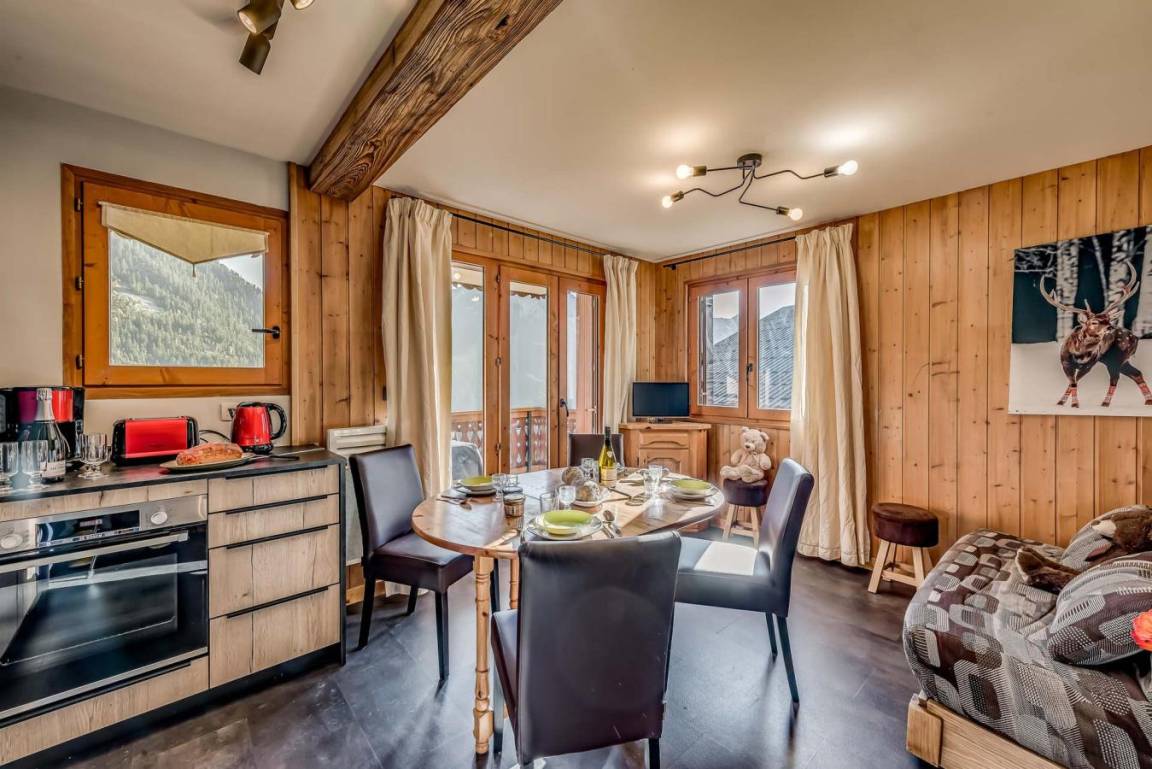 Le Chardonnet ist eine schöne Residenz im savoyischen Stil. Sie steht perfekt im Viertel Les Hauts du Crey 200 Meter entfernt von der Seilbahn und ganz in der Nähe der Station Champgny-en-Vanoise in den französischen Nordalpen. Ausrichtung nach Süden mit einer sehr schöner Aussicht auf dem Dorf und den Bergen. Fläche von ungefähr 35 m². 5te Etage. Orientierung : Süd, West. Wohnzimmer mit Klappschlafcouch. Schlafzimmer mit Doppelbett. offener Schlafbereich mit 2 Stockbetten. Kochnische mit Backofen, Geschirrspülmaschine, Mikrowellenherd, 2 elektronische Herdplatten, Kühlschrank. Badezimmer mit Badewanne. separates WC. Balkon. Die oberen Betten sind nicht für Kinder unter 6 Jahren geeignet.