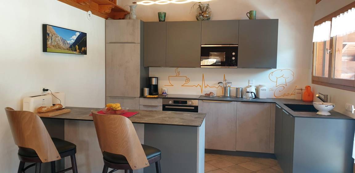 „Séjour de 2 semaines. Nous étions 4 mais le gîte peut accueillir facilement plus de personnes. Le chalet est bien équipé et confortable, avec une jolie vue sur le relief environnant. Le stationnement est facile et le gîte est très bien situé (boulangerie, commerces et restaurants à proximité).Nous avons adoré le coin pour faire de très belles randonnées sans faire des heures de voiture.“