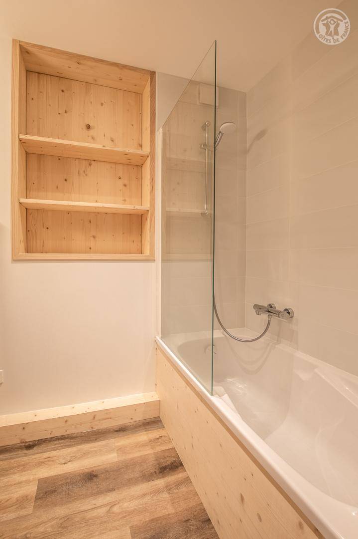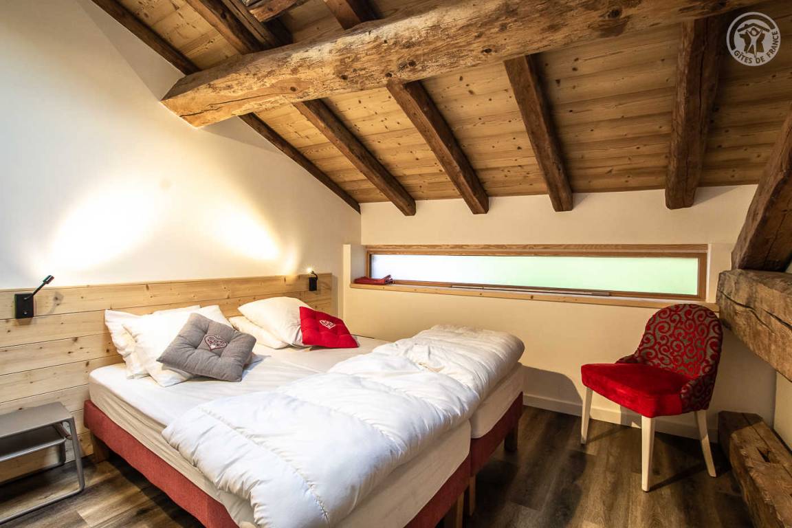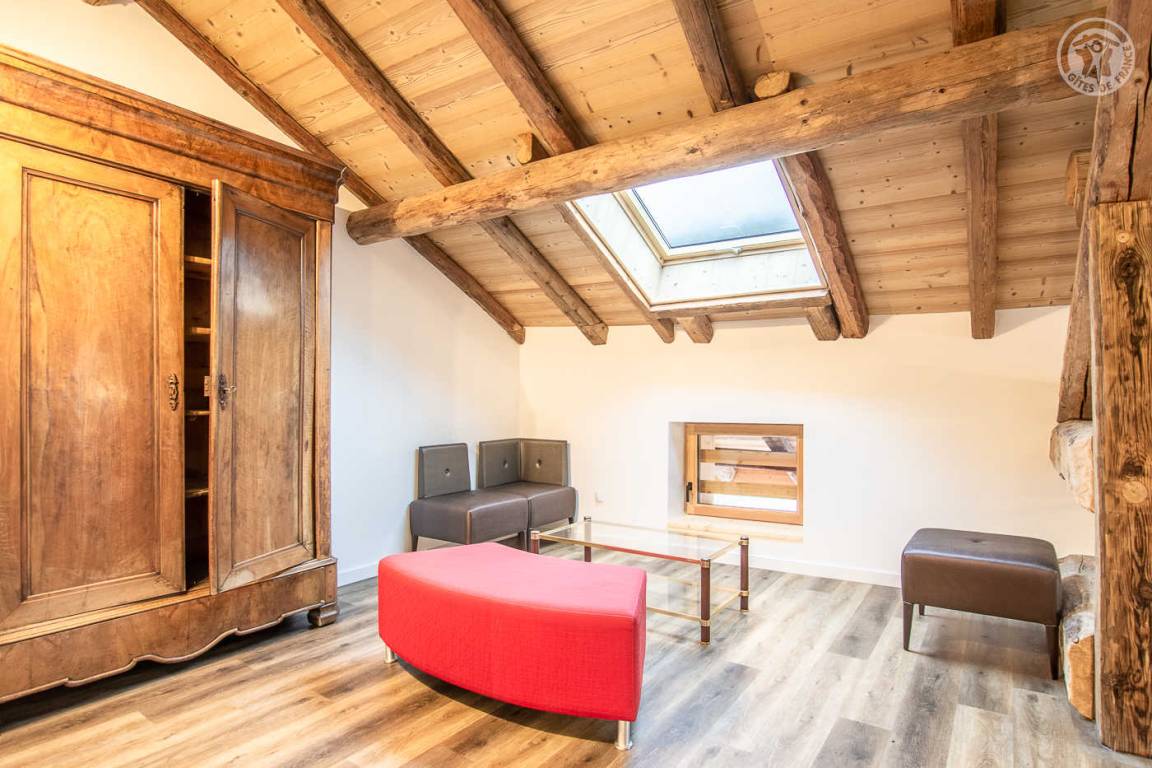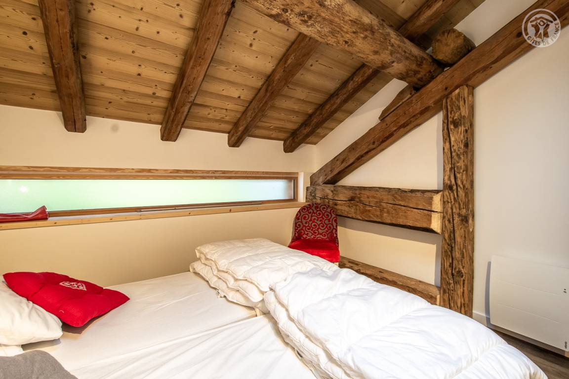 Maisonette-Ferienhaus in einem Dorfhaus, bestehend aus im 1. Stock: einem Eingang, einem Wohnbereich, einer Wohnküche mit Zugang zu einem Familienschlafzimmer mit 2 Etagenbetten (80 x 200 cm) und einem umschlossenen Savoyard-Bett (1 Doppelbett). in einer Nische, die durch eine Schiebetür verschlossen ist). 2. Etage: 2 Schlafzimmer mit jeweils 2 Einzelbetten 80 x 200 cm, die zu 1 Doppelbett 160 x 200 cm kombiniert werden können, ein großes Zwischengeschoss mit Sitzecke, ein Badezimmer (Badewanne mit Duschstange), separates WC. Balkon. Öffentlicher Parkplatz vor dem Ferienhaus oder am Ortseingang. Die Vermietung von Bettwäsche umfasst auch die Vermietung von Badezimmerwäsche.