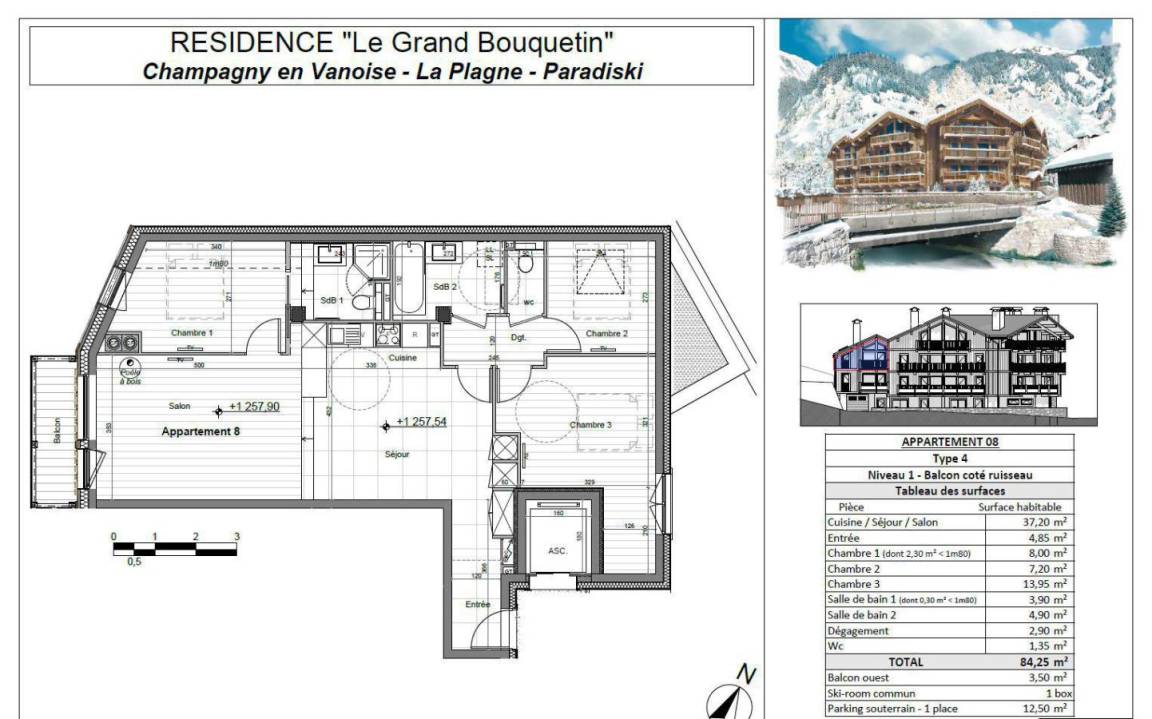 Fläche von ungefähr 83 m². 1te Etage. Orientierung : Nord. Wohnzimmer mit Klappschlafcouch, Sessel, . Schlafzimmer mit 2 Einzelbetten (90x200). Mansardenzimmer mit Dusche, Doppelbett (140x190), WC. offener Schlafbereich mit 2 Einzelbetten (90x200). Kochnische mit Backofen, Geschirrspülmaschine, Mikrowellenherd, 2 Induktionsherdplatten, Kühl-Gefrier-Kombination. Badezimmer mit Waschmaschine, Wäschetrockner. separates WC. Balkon ab 3.80 m².