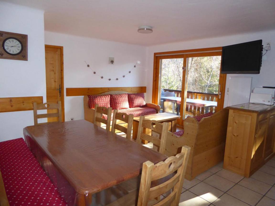 Das Chalet Cristal besteht aus 4 Wohnungen von sehr gutem Zustand. Sie bieten eine komfortable Wohnfläche von 70 bis 100 m². Ihnen stehen ein nach Süden ausgerichteter Balkon, Keller, Parkplatz und Garage zur Verfügung. Die Gondelbahn liegt etwa 300 m entfernt. Das Zentrum des Dorfes Champagny en Vanoise mit Geschäften und Dienstleistungen liegt 200 m entfernt. Das städtische Freibad finden Sie nur 50 m entfernt. Fläche von ungefähr 72 m². Erdgeschoss. Orientierung : Süd. Wohnzimmer mit Ausziehschlafcouch für 2 Personen. 2 Schlafzimmer mit Doppelbett (140). Schlafzimmer mit 2 Einzelbetten. Kochnische mit Backofen, Geschirrspülmaschine, Mikrowellenherd, 2 Gasherdplatten. Badezimmer mit Badewanne, Waschmaschine. Badezimmer mit Dusche. separates WC. Terrasse.