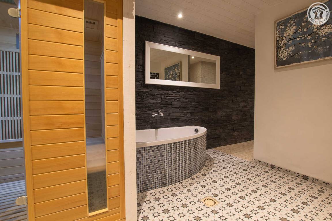 „Gite spacieux, au calme et a proximité a pied de toutes les commodités du village. Terrase très agréable avec une belle vue. Les enfants ont beaucoup apprécié le seau d'eau froide du sauna“