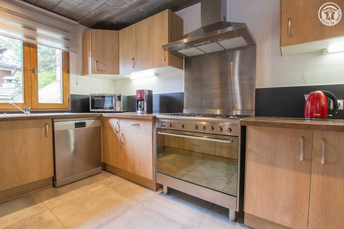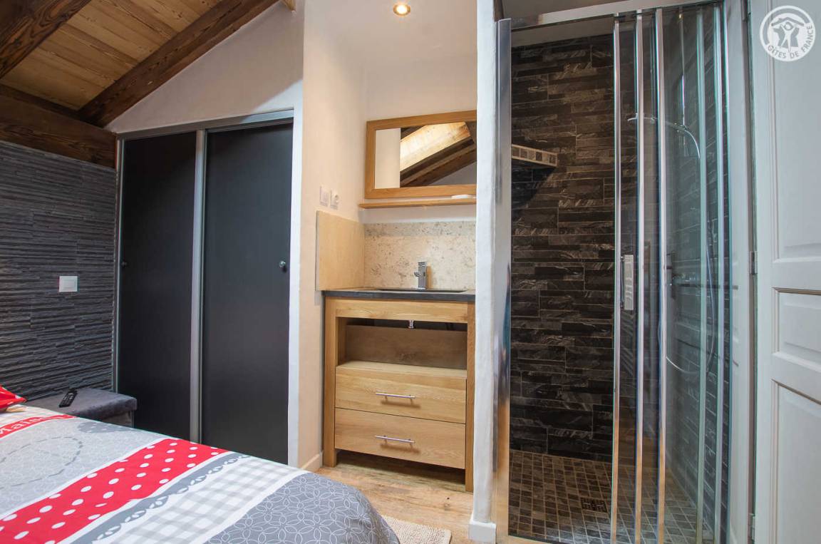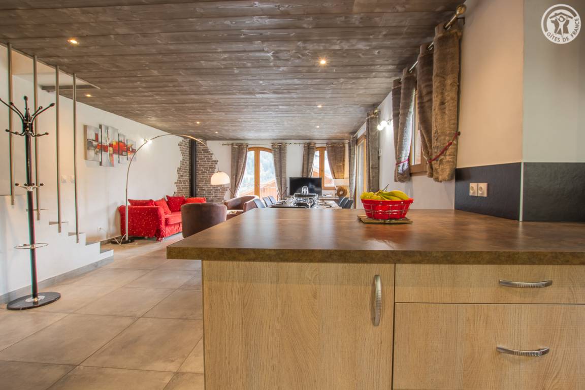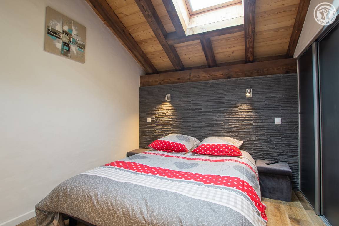 Chalet neben einem Hauptwohnsitz. Auf 3 Ebenen: Eingang durch die große Garage, Ruhebereich (mit TV), Wellnessbereich (mit 4-Sitzer-Sauna, Dusche, Badewanne), Waschküche (Waschmaschine und Trockner). Im 1. Stock: Wohnzimmer-Küche-Wohnzimmer mit großer 40 m² möblierter Balkon-Terrasse, WC. Im 2. Stock: 1 Schlafzimmer mit Balkon und Dusche (1 Doppelbett 160x200 cm und Schlafbereich mit 2 Etagenbetten), 2 Schlafzimmer mit Dusche, Waschbecken und TV (2 Etagenbetten / 1 Doppelbett 140x190 cm), WC . Garage zum Abstellen mehrerer Fahrzeuge, zum Abstellen von Fahrrädern, Motorrädern und Skiern.