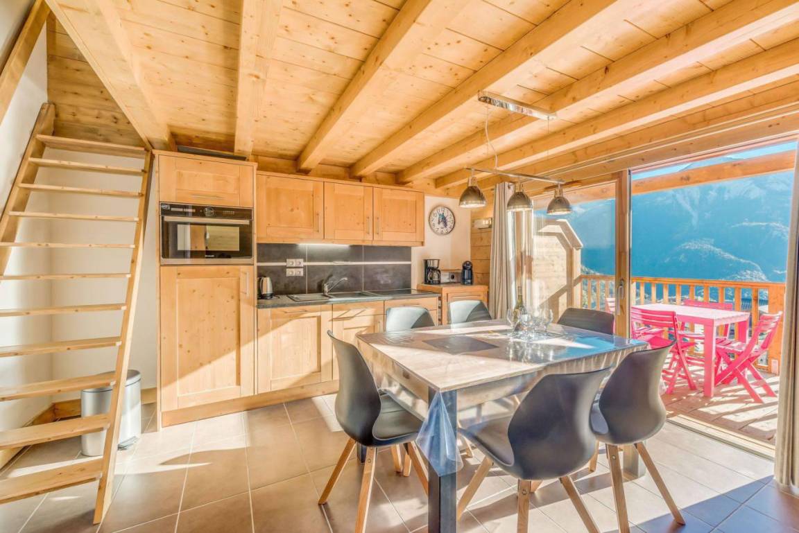 Fläche von ungefähr 52 m² enthält 5 m² unter 1,80 m. 11te Etage. Orientierung : Süd, West. Wohnzimmer mit Klappschlafcouch. Zwischengeschoss mit 2 Einzelbetten. Schlafzimmer mit Doppelbett (180). Kochnische mit Fonduegerät, Raclettegerät, Wasserkocher, Kaffeemaschine, kleiner Backofen mit Mikrowellenfunktion, Toaster, Geschirrspülmaschine, Glaskeramikkochfelder, Kühl-Gefrier-Kombination. Waschräume mit Dusche, Waschmaschine. separates WC. Balkon.