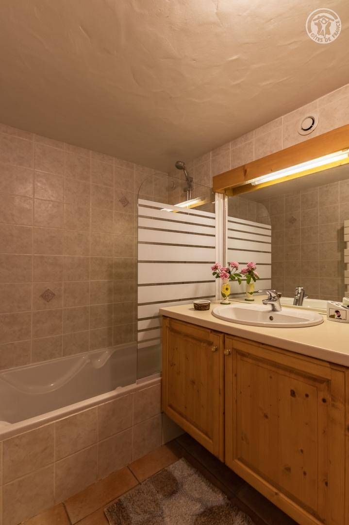 Gîte im Haus des Eigentümers. Ebenerdige Unterkunft. Erdgeschoss: Wohnzimmer-Küche-Wohnzimmer, WLAN, 3 Schlafzimmer (1 Doppelbett / 2 Einzelbetten / 2 Einzelbetten) mit eigenem Bad (2 Duschen + eine Badewanne). Zusätzliche Schlafgelegenheit verfügbar. Hof + großes Grundstück + 2 Parkplätze. Ski Champagny-Verbindung nach La Plagne/Paradiski 900 m entfernt, Courchevel-Verbindung zu den 3 Tälern 14 km entfernt. Thermen Brides-les-Bains 12 km entfernt. Ermäßigte Preise zu bestimmten Zeiten. 500 m entfernt, Entspannungsbereich (Spa, Sauna, Hammam) und Hallenbad, Sommer und Winter beheizt.
