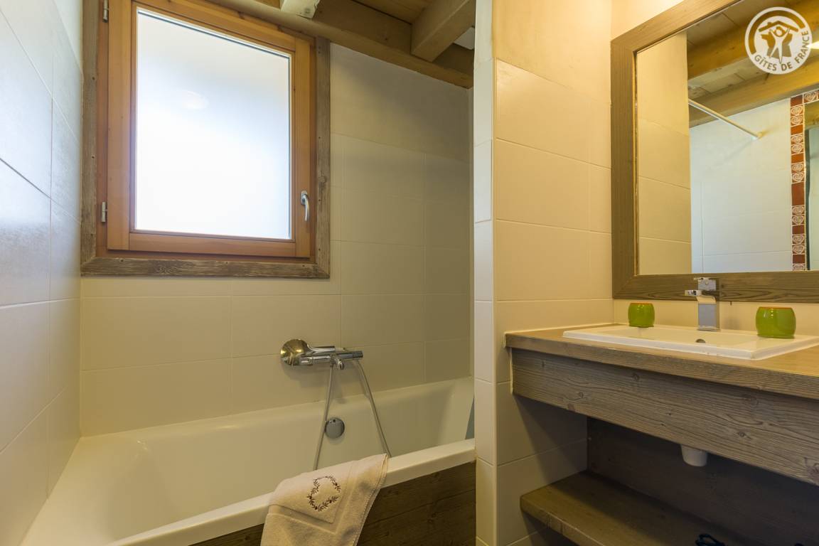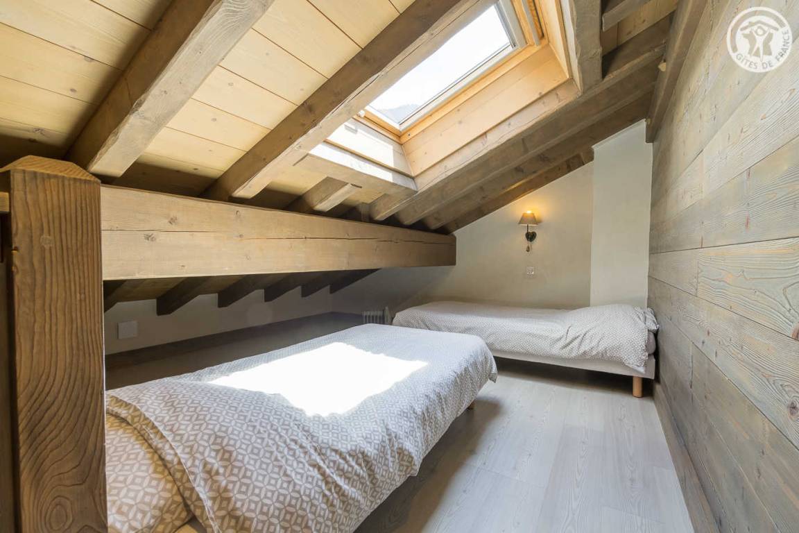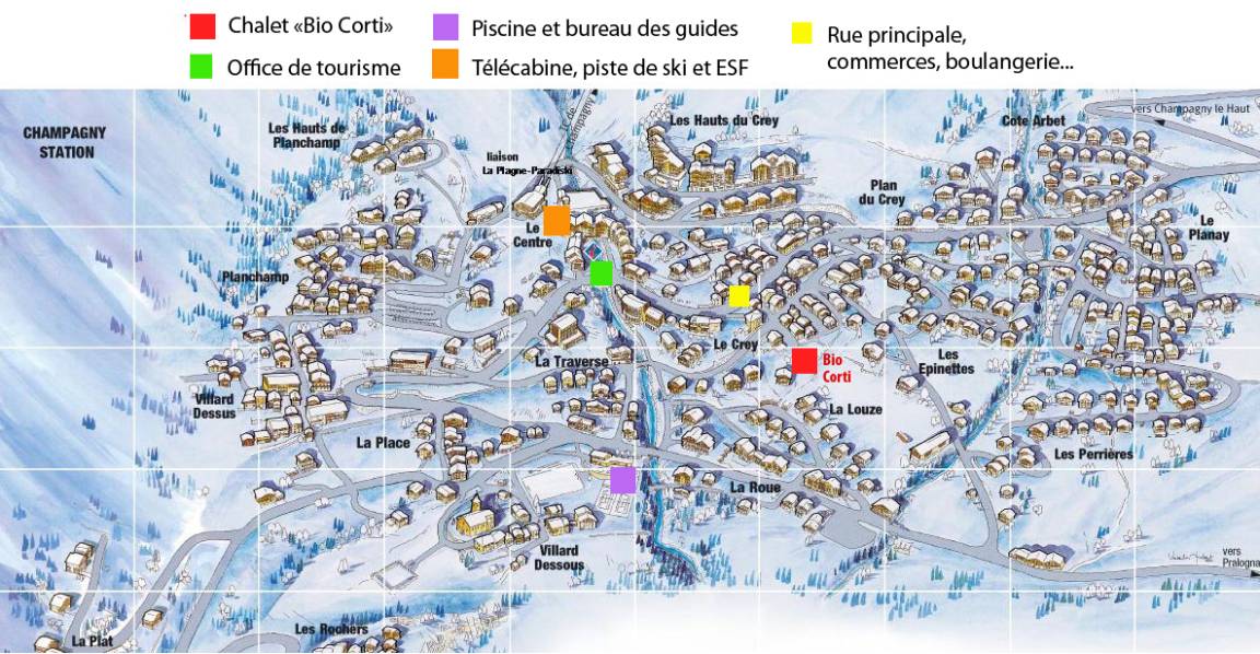 Ferienwohnung im Haus der Besitzer. Erdgeschoss + 1. + 2. Stock: Wohnzimmer-Küche-Lounge, WLAN, 3 Schlafzimmer (Doppelbett / 2 Einzelbetten / 2 Einzelbetten), Duschbad (Dusche), Badezimmer (Badewanne). Erfrischender Boden. Balkon + kleiner privater Garten. Skifahren Champagny/la Plagne/Paradiski 250 m, Le Praz/Courchevel/3 Vallées 14 km. Langlauf 5km. 200 m entfernt, Entspannungsbereich (Spa, Sauna, Hammam) und überdachtes und beheiztes Schwimmbad im Sommer und Winter. Gewässer 5km. Wohnfläche: 83m² inkl. Dachgeschoss.