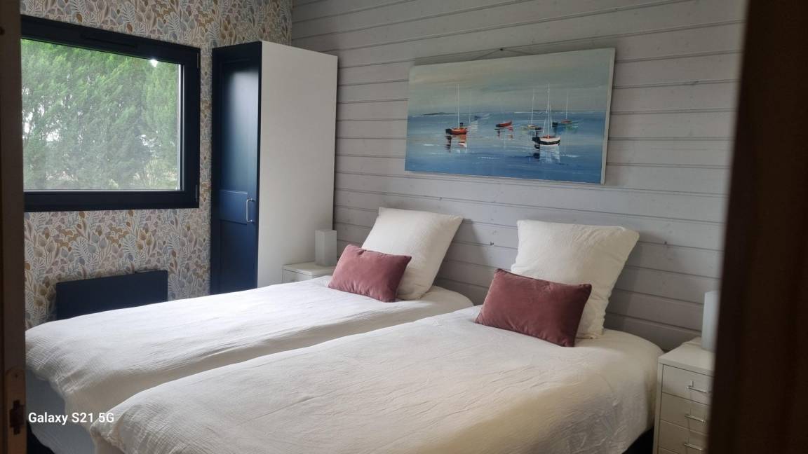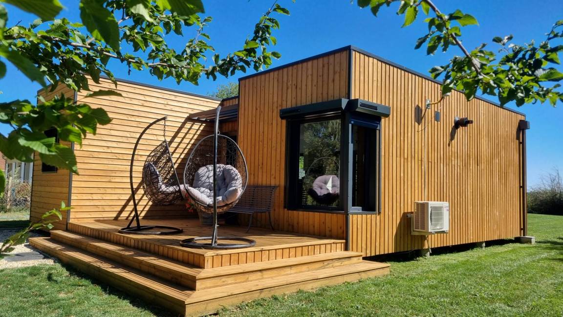 „Un gîte original en bois en pleine campagne très cosy, fonctionnel, literie de grande qualité et d’une propreté irréprochable, un beau jardin clos et des vélos électriques à disposition. Nous avons été accueillis chaleureusement par Hélène, à notre écoute et d’une grande humanité. Même nos deux chiennes ont été gâtées: Un toutou bar, des friandises, des tapis et des jouets. Nous reviendrons !“