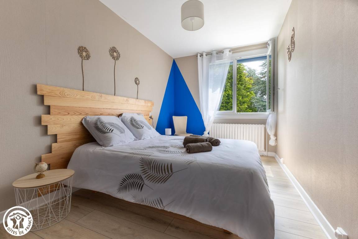 „Cet appartement, situé au 1er étage (accès escalier), est très bien rénové dans un cadre champêtre de tout repos, à environ 8 km de la ville de Gannat.“