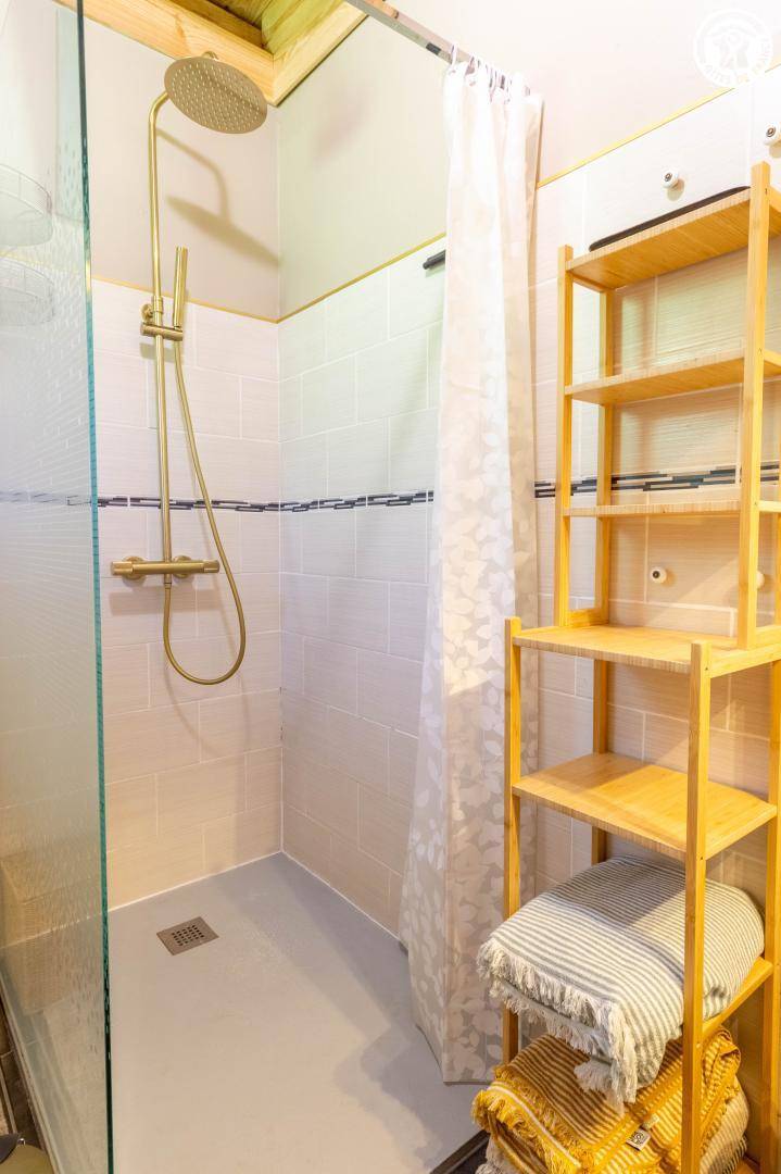 Freistehendes Haus auf drei Ebenen. Im Erdgeschoss: Wohnküche mit Sitzecke. 1. Stock: 2 Schlafzimmer (1 Doppelbett 160 x 200 cm / 1 Doppelbett 160 x 200 cm), Badezimmer (Dusche und WC). 2. Stock (Zugang über eine Wendeltreppe): ausgebauter Dachboden unter der Schräge (4 Einzelbetten 90 x 190 cm). Gesamtfläche: 92 m² einschließlich Dachboden.