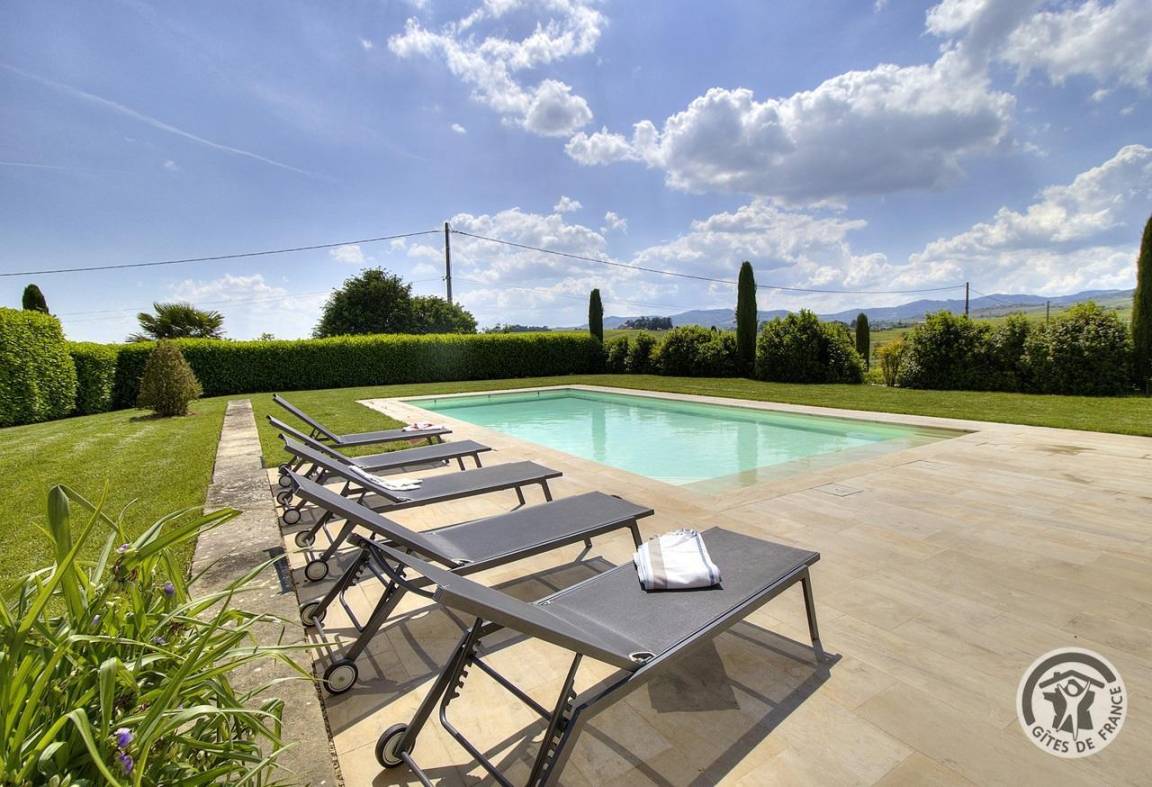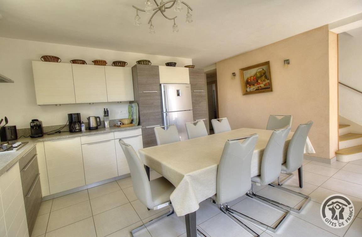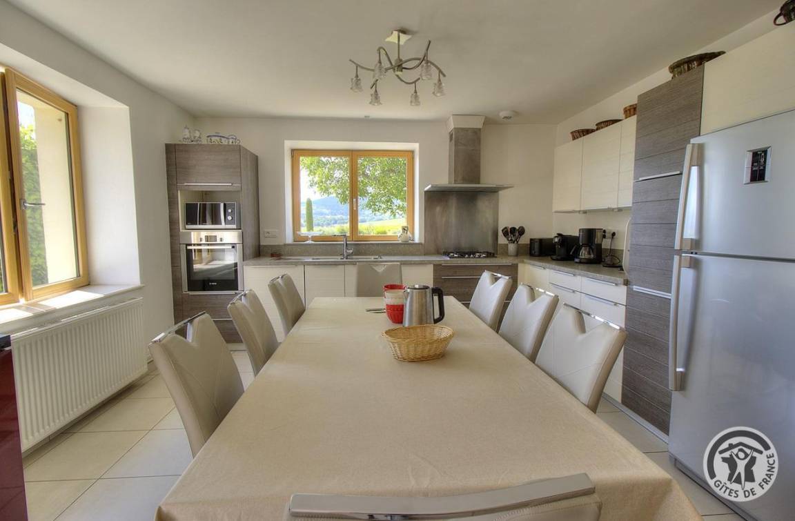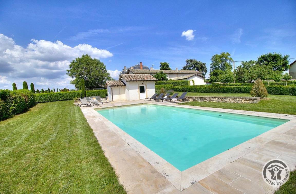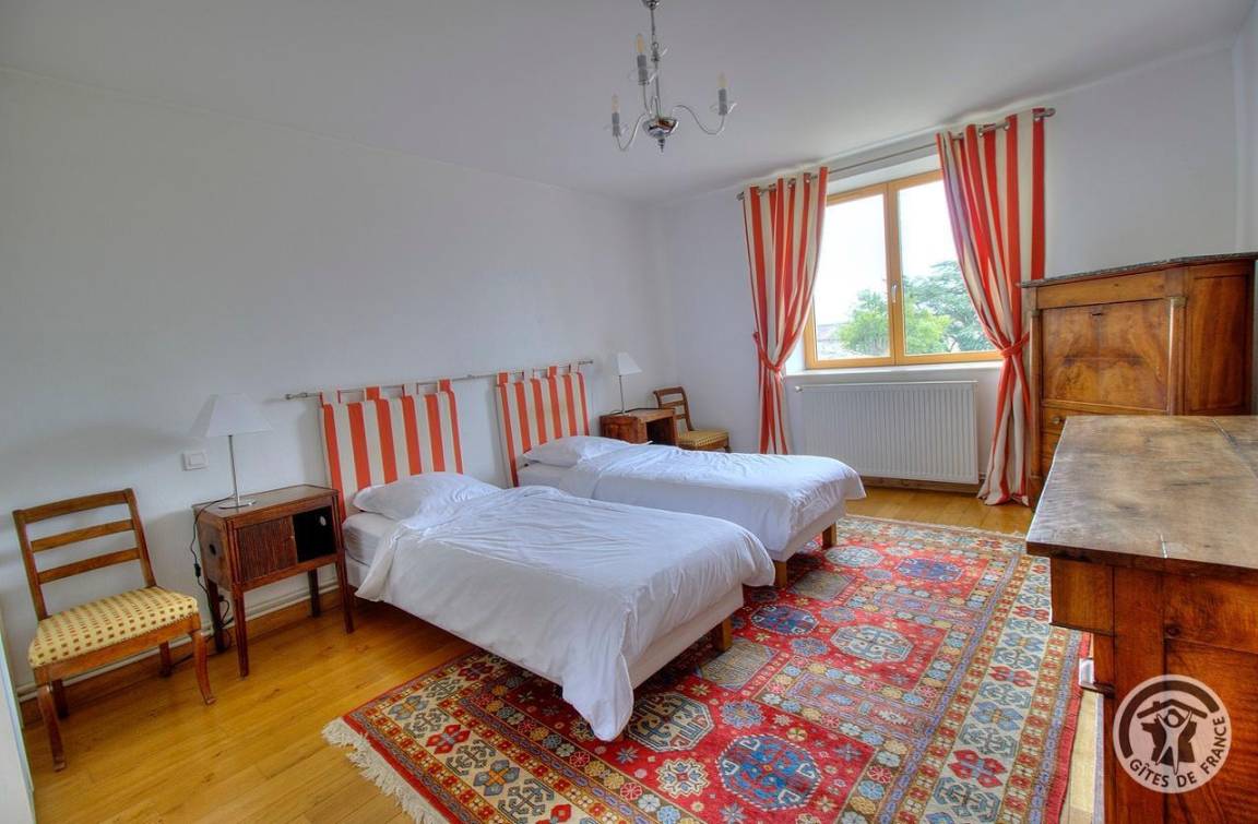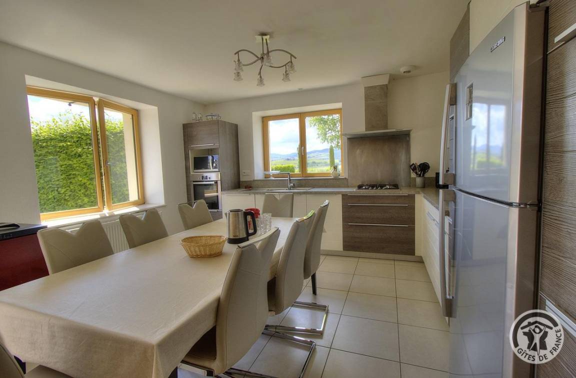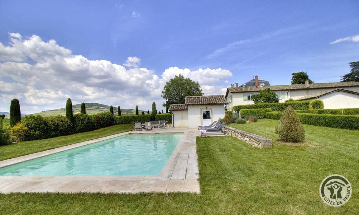 „Gite confortable pour 8 personnes. Nous sommes arrivés à la fin des vendanges, la première semaine par beau temps nous avons largement profité de la grande piscine chauffée que nos petits enfant ont bien appréciée. Très bel environnement dans le Beaujolais. Le gite est spacieux bien adapté pour 8 personnes.“