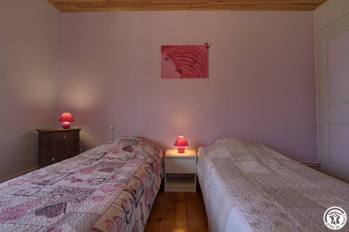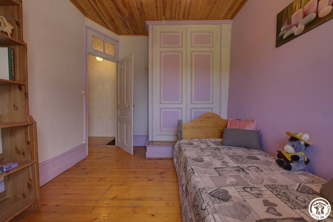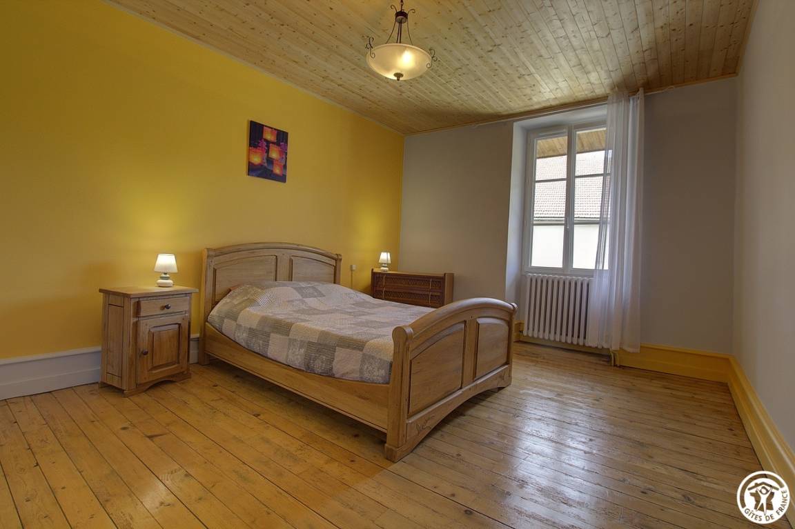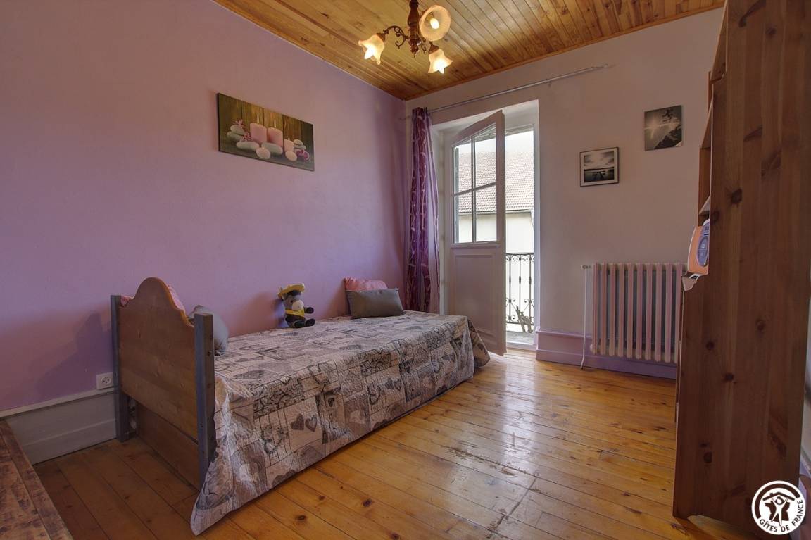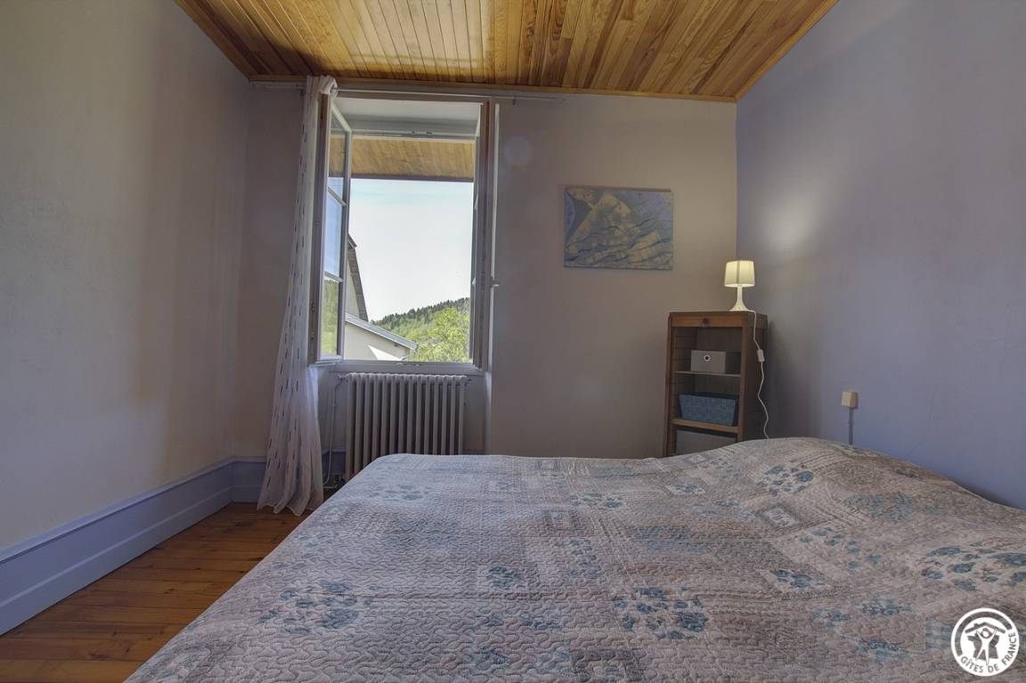 Auf 780 Metern Höhe, 4 km vom Genin-See (siehe Foto), auch bekannt als „Klein-Kanada des Haut Bugey", liegt das Ferienhaus La Vigne (116 m²) in einem ruhigen Weiler. Es bietet Platz für 6 Personen in seinen 4 Schlafzimmern im Obergeschoss, die über eine Treppe erreichbar sind. Der Haupteingang befindet sich zwischen dem kleinen Garten und der Terrasse und grenzt direkt an das Haupthaus der Eigentümer. Rechts vom Flur liegt eine separate, funktionale Küche. Links befindet sich ein Wohnzimmer mit Zugang zu einem Aufenthaltsraum mit Kamin. Am anderen Ende des Flurs befindet sich ein offener Hauswirtschaftsraum mit Spüle und Waschmaschine, neben dem Badezimmer und einem separaten WC. Eine schöne Holztreppe führt zu den 4 Schlafzimmern: dem orangefarbenen Zimmer mit einem Doppelbett (160 x 200 cm), dem Kinderzimmer mit Ausziehbett, Spielecke und eigenem Balkon, dem blauen Zimmer mit zwei Einzelbetten (90 x 200 cm) und dem rosafarbenen Zimmer mit zwei Einzelbetten (90 x 200 cm). Die Zentralh