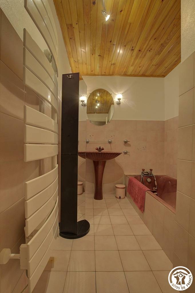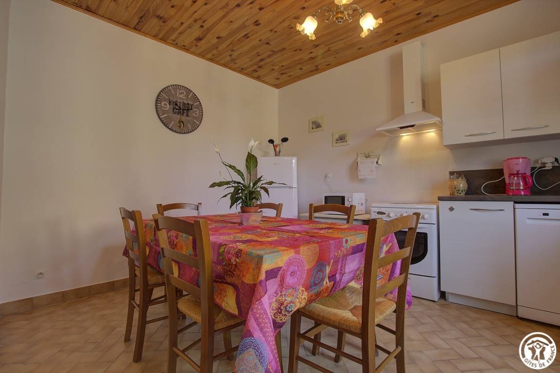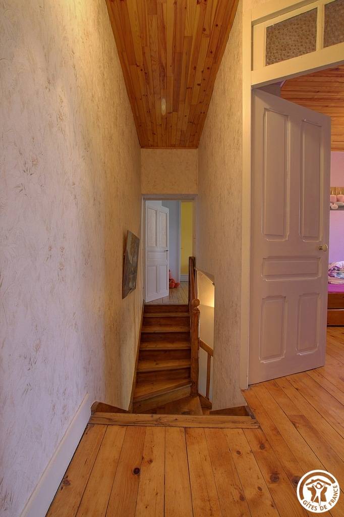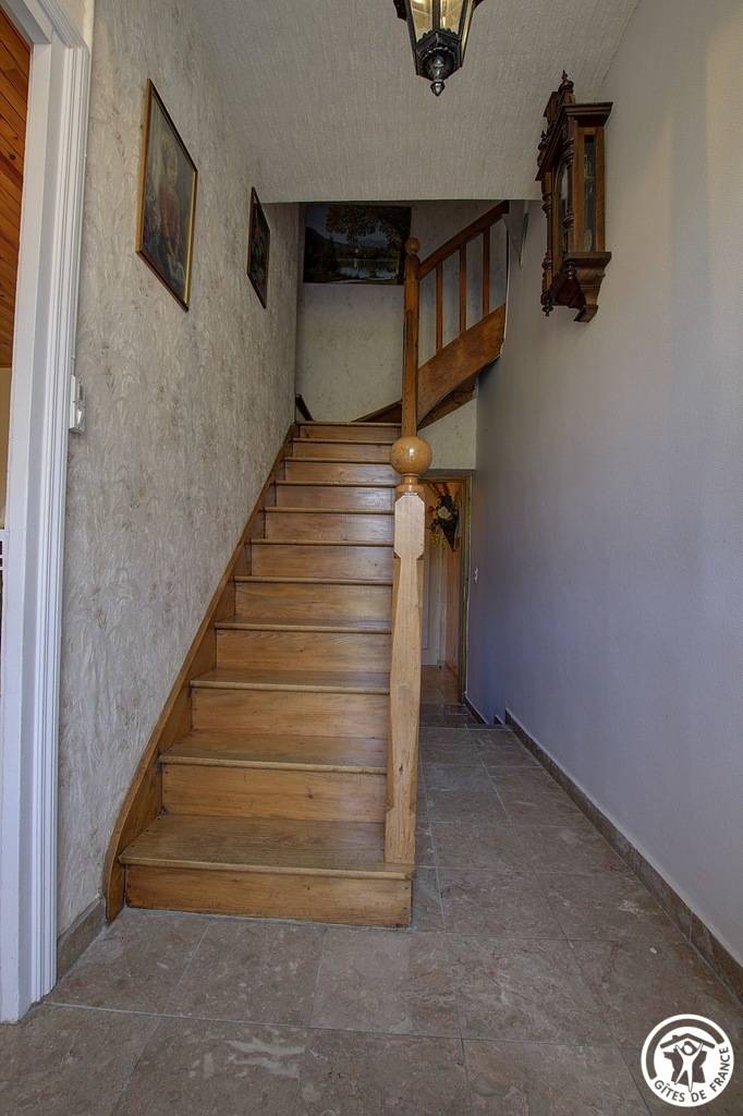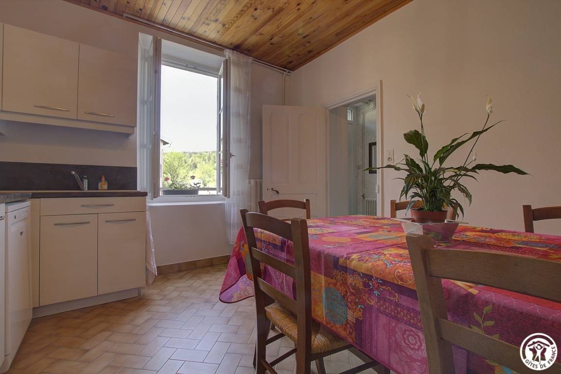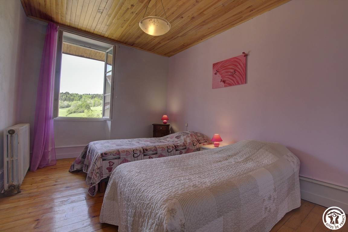 Auf 780 Metern Höhe, 4 km vom Genin-See (siehe Foto), auch bekannt als „Klein-Kanada des Haut Bugey", liegt das Ferienhaus La Vigne (116 m²) in einem ruhigen Weiler. Es bietet Platz für 6 Personen in seinen 4 Schlafzimmern im Obergeschoss, die über eine Treppe erreichbar sind. Der Haupteingang befindet sich zwischen dem kleinen Garten und der Terrasse und grenzt direkt an das Haupthaus der Eigentümer. Rechts vom Flur liegt eine separate, funktionale Küche. Links befindet sich ein Wohnzimmer mit Zugang zu einem Aufenthaltsraum mit Kamin. Am anderen Ende des Flurs befindet sich ein offener Hauswirtschaftsraum mit Spüle und Waschmaschine, neben dem Badezimmer und einem separaten WC. Eine schöne Holztreppe führt zu den 4 Schlafzimmern: dem orangefarbenen Zimmer mit einem Doppelbett (160 x 200 cm), dem Kinderzimmer mit Ausziehbett, Spielecke und eigenem Balkon, dem blauen Zimmer mit zwei Einzelbetten (90 x 200 cm) und dem rosafarbenen Zimmer mit zwei Einzelbetten (90 x 200 cm). Die Zentralh