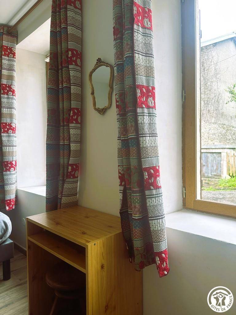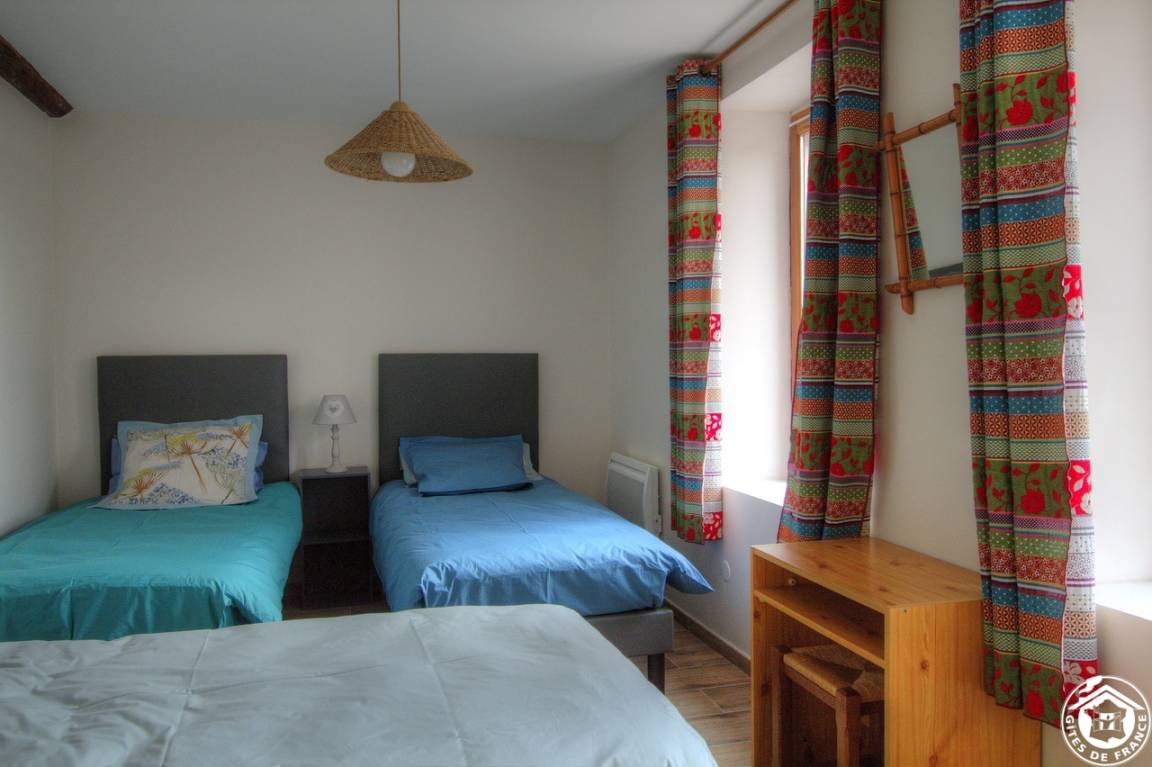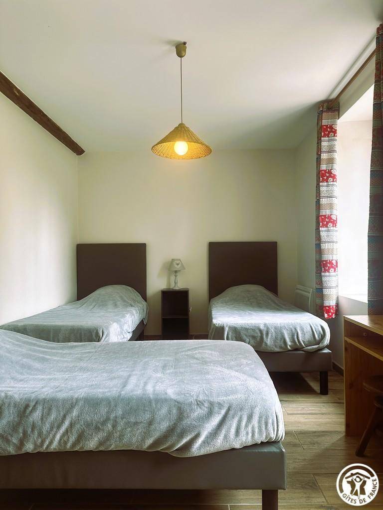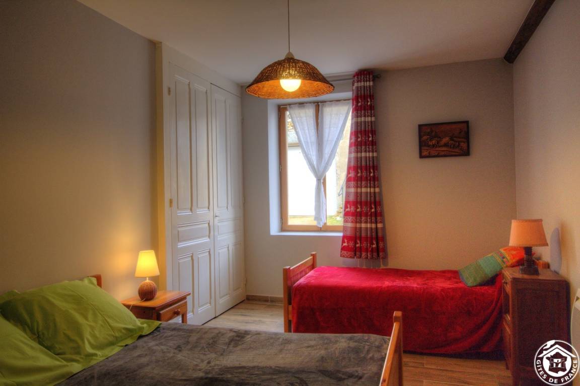 Willkommen in der 78 m² großen Gîte Les Lupins im Erdgeschoss des Hauses des Eigentümers im oberen Dorfteil von Charix. Diese Gîte mit separatem Eingang verfügt über ein Wohnzimmer mit voll ausgestatteter Küche, zwei Schlafzimmer, eines mit einem 140 cm breiten und einem 90 cm breiten Bett sowie das andere mit drei 90 cm breiten Einzelbetten, von denen zwei zu einem 180 cm breiten Doppelbett umgebaut werden können. Vom Wohnzimmer aus gelangt man ins Badezimmer.