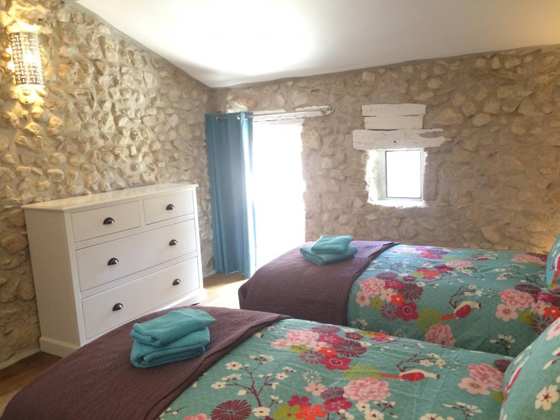 Die Unterkunft ist durch einen zentralen Gebäudeteil mit einem Brunnen, der früher beiden Häusern Wasser spendete, mit dem Haus der Vermieter verbunden. Erdgeschoss: großes Wohnzimmer (1 Schlafsofa 160 cm), Holzofen (Holz inklusive), komplett ausgestattete Küche, Waschküche/WC, Trockner. Obergeschoss: 4 Schlafzimmer, davon 2 mit eigenem Bad (Dusche) und WC (2 Betten 90 cm oder 1 Bett 180 cm) (2 Betten 90 cm oder 1 Bett 180 cm), und 2 weitere (1 Bett 160 cm) (1 Bett 140 cm, 1 Bett 140 cm als Etagenbetten) mit Bad (Dusche) und separatem WC. Aufnahmekapazität: 12 Personen. Außengelände: eigener beheizter Swimmingpool, Boule-Platz, Terrasse mit Schatten, umschlossener Garten und automatisches Tor. Ohne Gegenüber. Bettwäsche und Handtücher inklusive. Die Betten sind bei Ihrer Ankunft bezogen, je nach Wunsch.