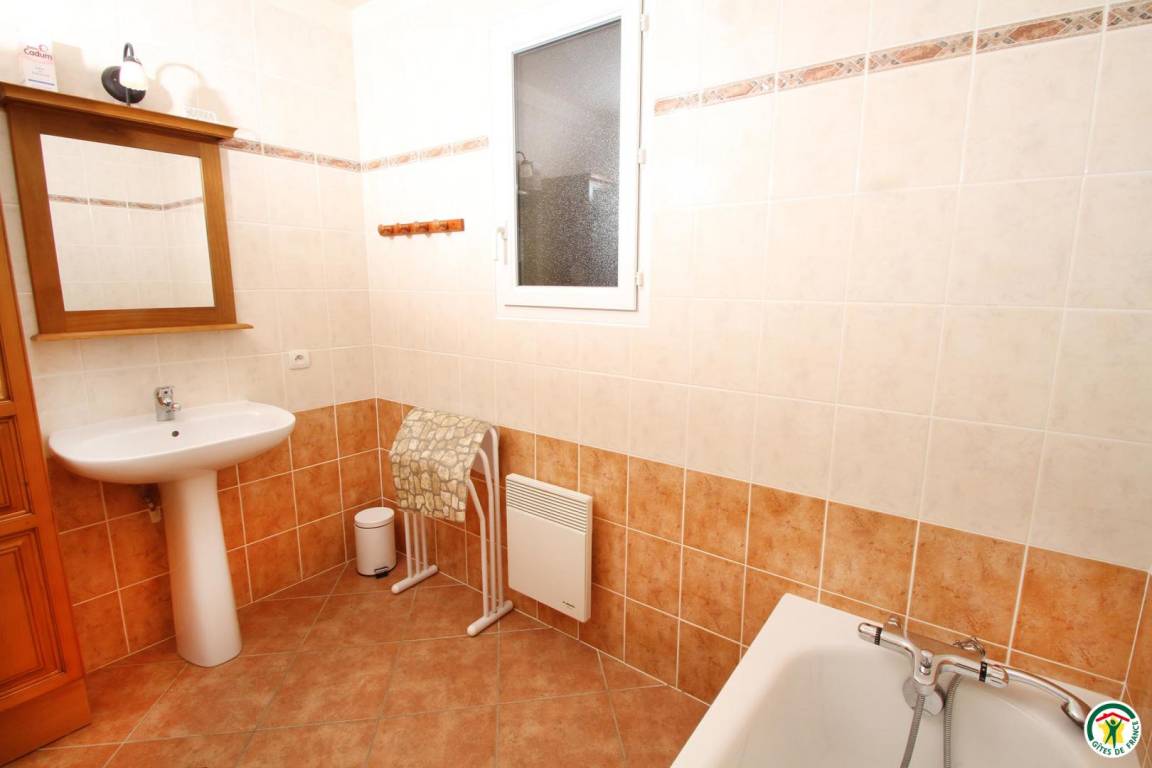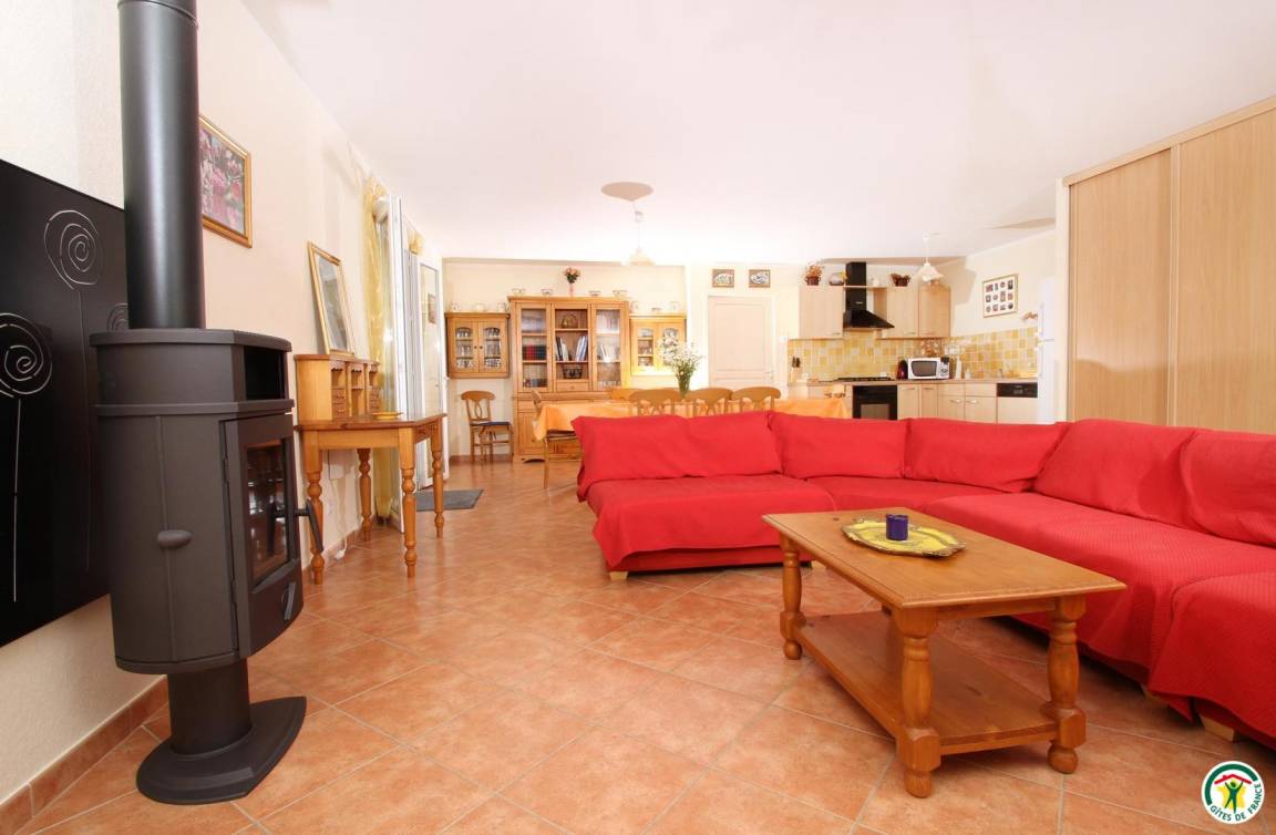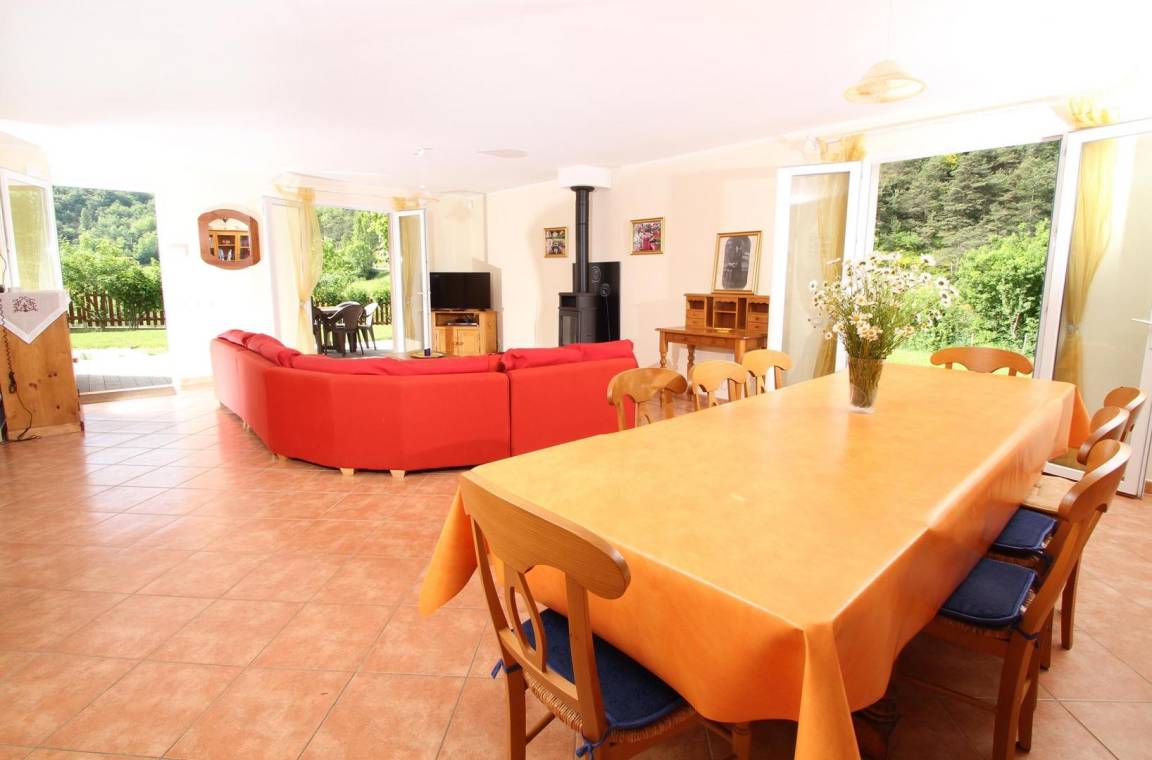 Großer Aufenthaltsraum: Küche, Essbereich und Wohnzimmer, 4 Schlafzimmer (1 Bett 140 cm)(1 Bett 140 cm)(2 Betten 90 cm)(2 Betten 90 cm), Bad mit Dusche, Badezimmer, 2 WCs. DVD-Player. Große Terrassen auf 3 Seiten des Hauses. Fußbodenheizung und Elektroheizung, Holzofen im Wohnzimmer.