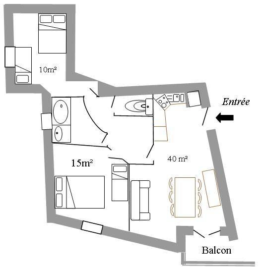 73 m² Gîte ∙ 2 Schlafzimmer ∙ 6 Gäste