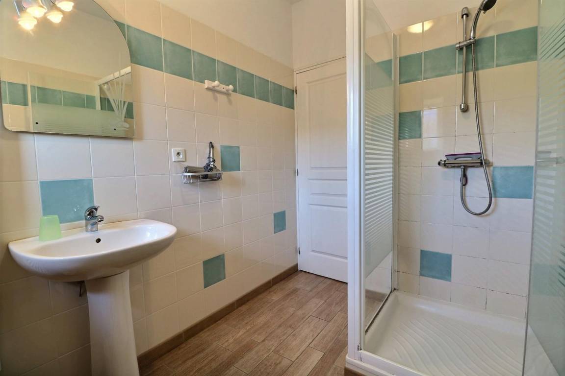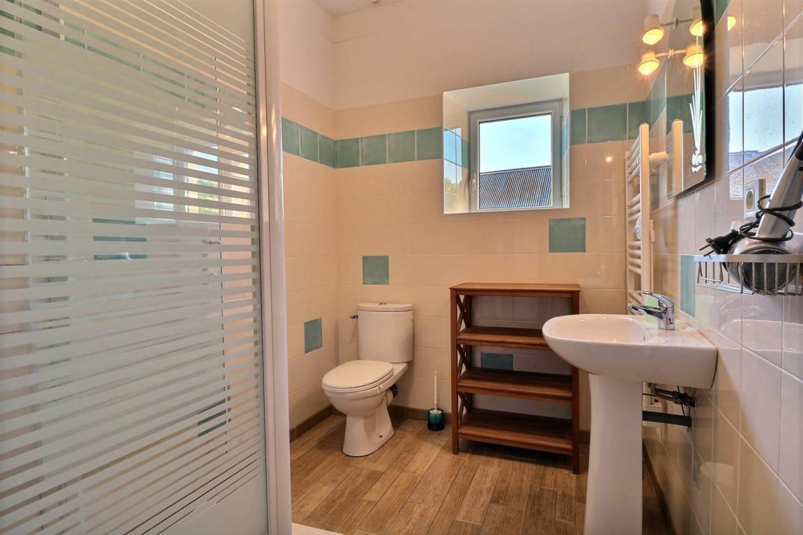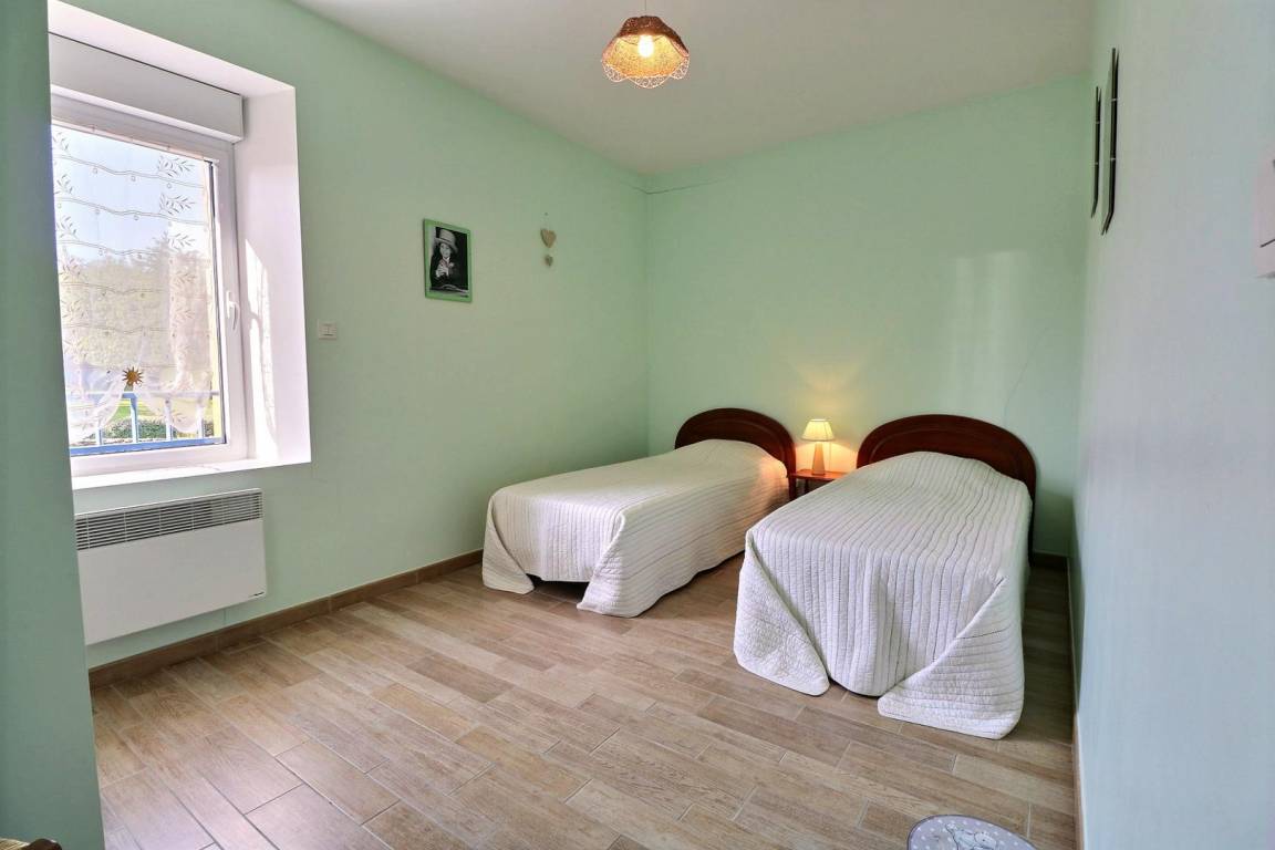 Erdgeschoss: Wohnzimmer mit Lounge, offene Küche - WC. Obergeschoss: 1 Schlafzimmer (1 Doppelbett 140) - 1 Schlafzimmer (1 Doppelbett 140) - 1 Schlafzimmer (2 Einzelbetten 90) - Duschbad mit WC - elektrische Fußbodenheizung und Konvektoren.