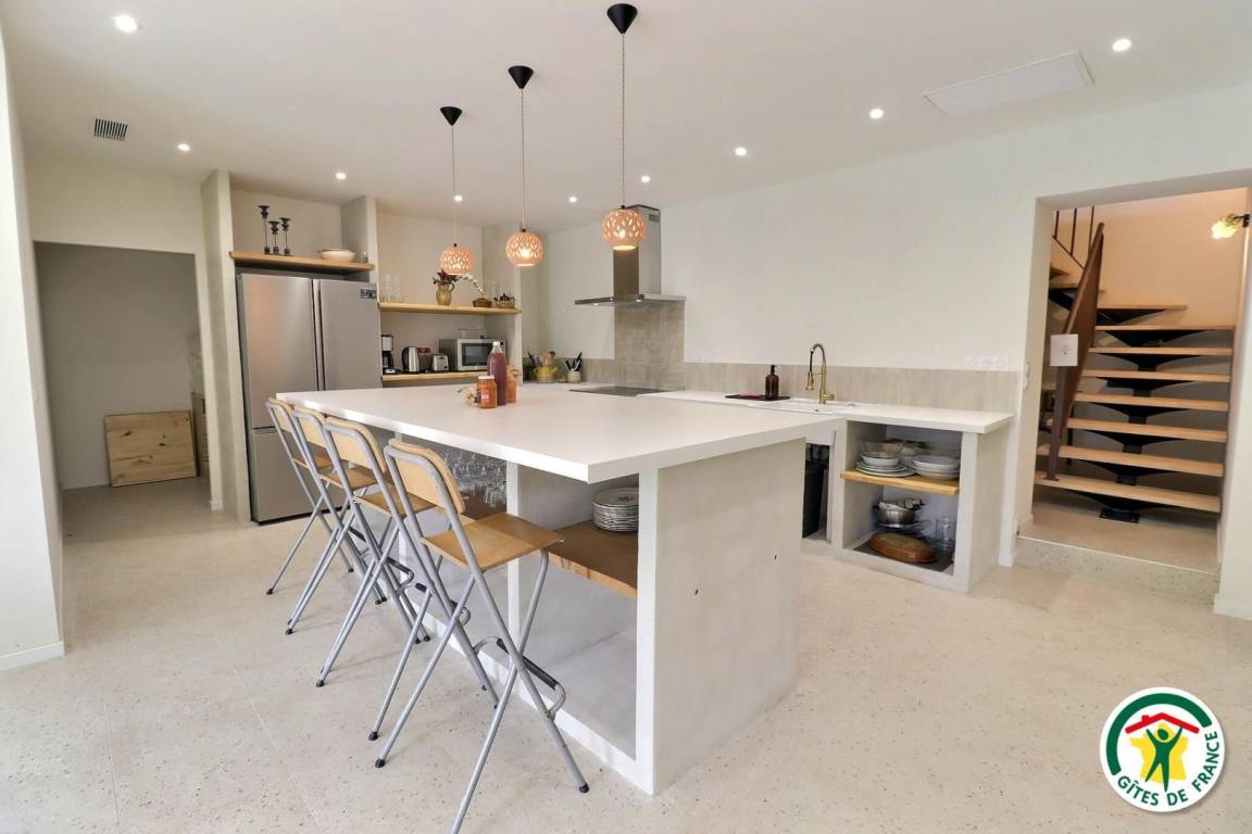 La Bastide d'Isaure ist ein großes Ferienhaus mit über 250 m² und vereint gut gestaltete Räume, Modernität und Licht. Alle Räume sind durch eine Kanalheizung klimatisiert. Das Haus erstreckt sich über 2 Ebenen. Im Erdgeschoss: Wohnzimmer von fast 80 m², Waschküche/Abstellraum, Toilette, Schlafzimmer (2x90x200, ebenerdige Dusche und Toilette, Glastür nach draußen). Obergeschoss (Treppe mit Geländer): 5 Schlafzimmer (4x90x200, Dusche, WC) (2x90x200, Dusche, WC, Zugang zur Terrasse) (3x90x200, Dusche, WC, Zugang zur Terrasse) (2x90x200, Dusche, WC) (2x90x200, Dusche, WC), Treppenabsatz in einen Wohnbereich umgewandelt (Sofas, Fernseher, Spiele, Zugang zur Terrasse). Außenbereich: Parkplatz, Garten, 90 m² große Westterrasse. Kein Platz für Überflüssiges, das Wesentliche genügt sich selbst!