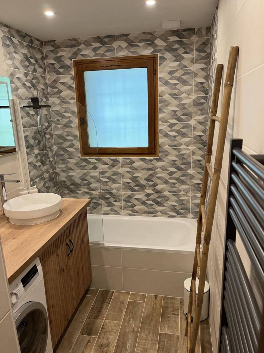 Fläche von ungefähr 180 m². Orientierung : Süd-West. Wohnzimmer. 2 Schlafzimmer mit Doppelbett (160x200). Schlafzimmer mit Doppelbett (160x200), Einzelbett (90x200). Schlafzimmer mit 3 Einzelbetten (90x200). Küche mit Fonduegerät, , Raclettegerät, Wasserkocher, Kaffeemaschine (Nespresso), Backofen, Toaster, Geschirrspülmaschine, Mikrowellenherd, 2 Induktionsherdplatten, Kühl-Gefrier-Kombination. Badezimmer mit Badewanne. Waschräume mit Dusche, Haartrockner, WC. separates WC. Balkon.