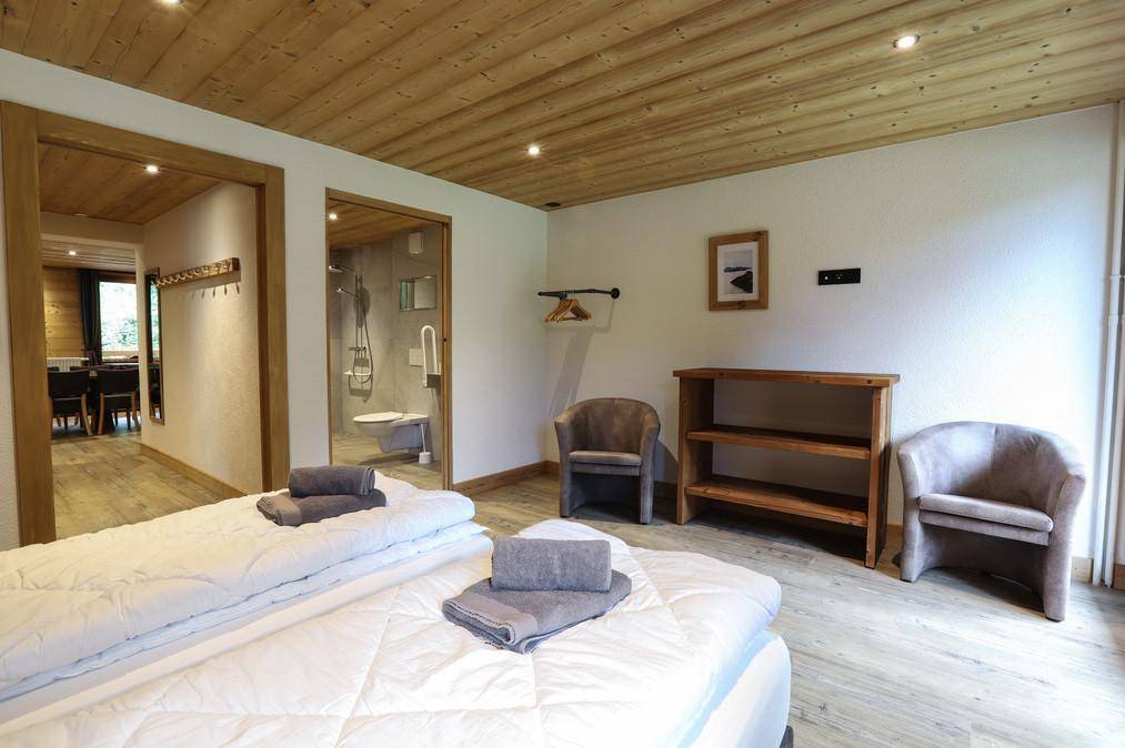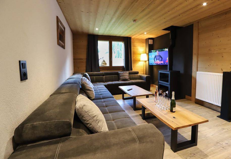 Fläche von ungefähr 200 m². 2te Etage. Orientierung : Süd. Niveau 0 : Wohnzimmer mit Kamin. Schlafzimmer mit 2 Einzelbetten (90x200), 2 Stockbetten (80x200), Waschraum, WC. 3 Schlafzimmer mit 2 Einzelbetten, Waschraum, WC. Schlafzimmer mit 3 Einzelbetten (90x200), Waschraum, WC. Küche mit Fonduegerät, Raclettegerät, 2 Wasserkocher, 3 Kaffeemaschinen, Backofen, Toaster, Waschmaschine, Geschirrspülmaschine, Mikrowellenherd, 2 Induktionsherdplatten, Kühlschrank, Wäschetrockner. Badezimmer. Balkon. Niveau -1 : Waschräume. separates WC. Terrasse-Garden. Niveau 1 : Schlafzimmer mit Einzelbett (90x200), Waschraum, WC. Die oberen Betten sind nicht für Kinder unter 6 Jahren geeignet.