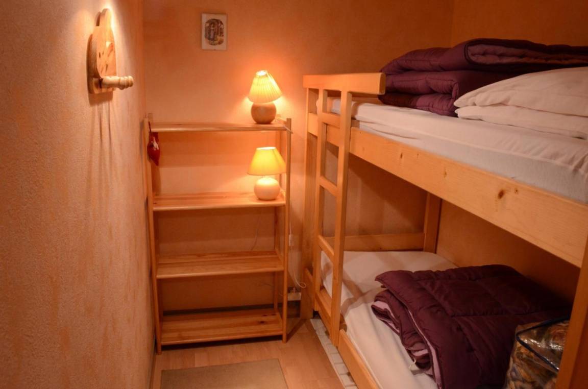 Fläche von ungefähr 35 m². Etage -1. Orientierung : Süd. Wohnzimmer mit Klappschlafcouch (140*190). Schlafzimmer mit Doppelbett (140*190). offener Schlafbereich mit 2 Stockbetten. Kochnische mit Fonduegerät, , Raclettegerät, Kaffeemaschine (filtre), Backofen, Toaster, Mikrowellenherd, 2 Herdplatten, Kühl-Gefrier-Kombination. separates WC. Badezimmer mit Dusche. Terrasse. Die oberen Betten sind nicht für Kinder unter 6 Jahren geeignet.