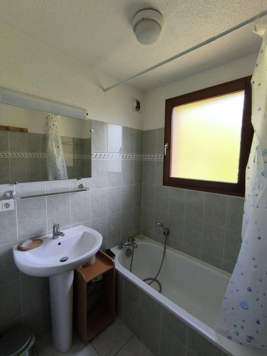 Fläche von ungefähr 44 m². Etage -2. Orientierung : Süd-West. Wohnzimmer. Schlafzimmer mit Doppelbett (140*190). Schlafzimmer mit Doppelbett (140*190), einfaches Mezzanine Bett. Küche mit Fonduegerät, Raclettegerät, Wasserkocher, Kaffeemaschine (filtres), Toaster, , 2 Glaskeramikkochfelder, Kühlschrank. Badezimmer mit Haartrockner. separates WC. Balkon mit Gartentisch und -stühle.