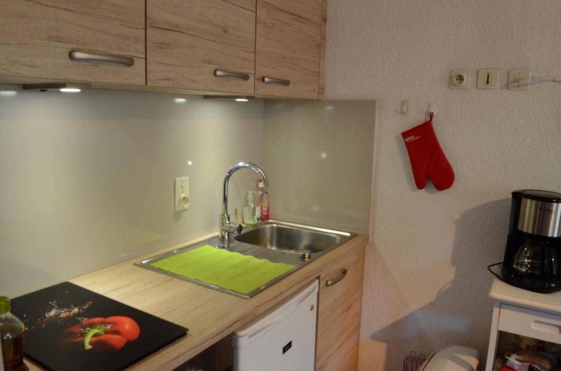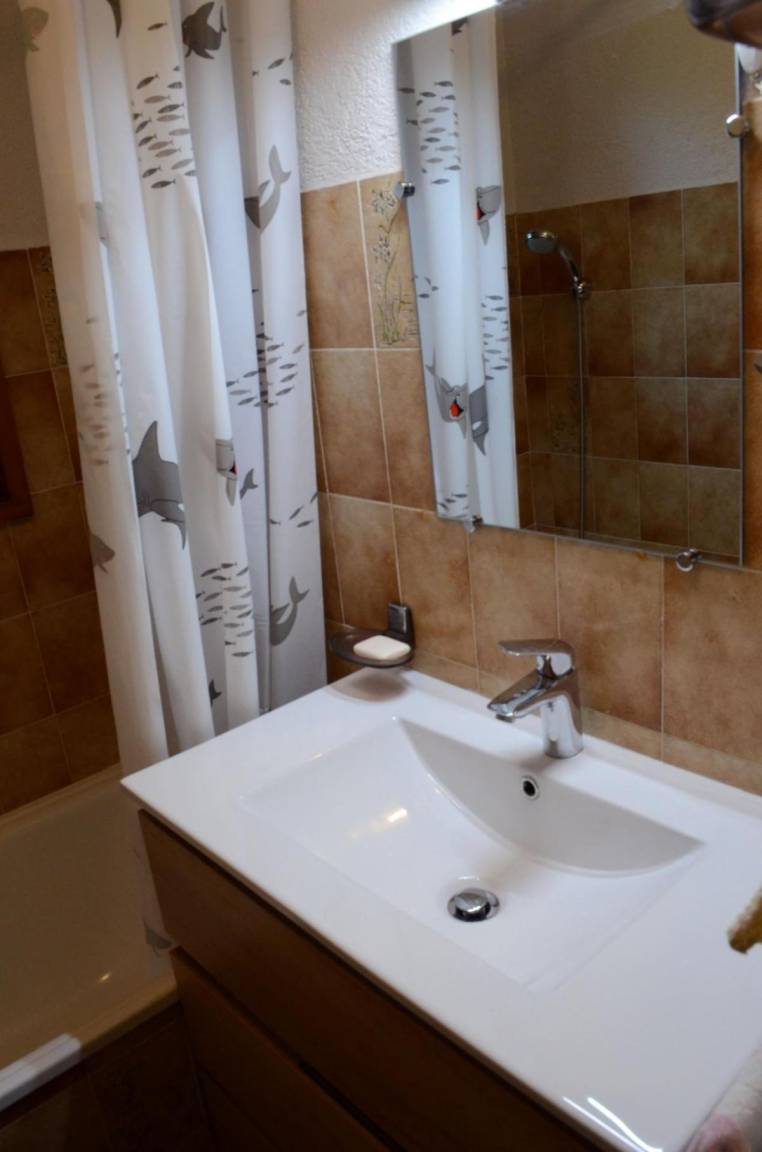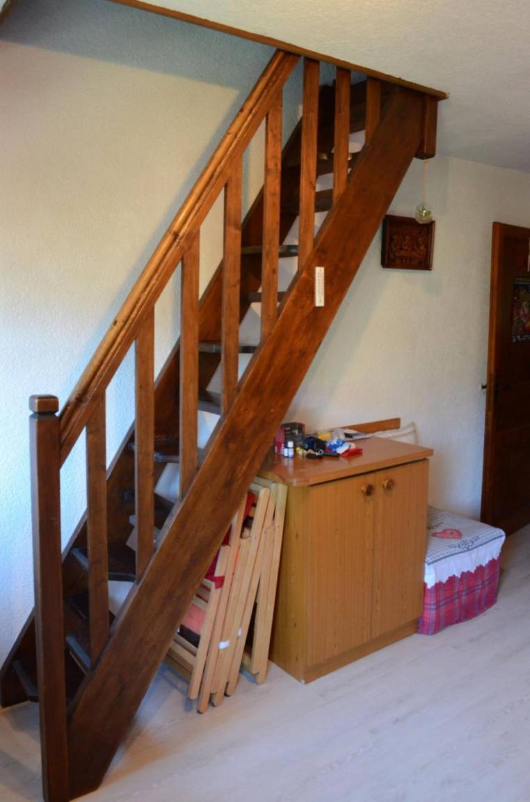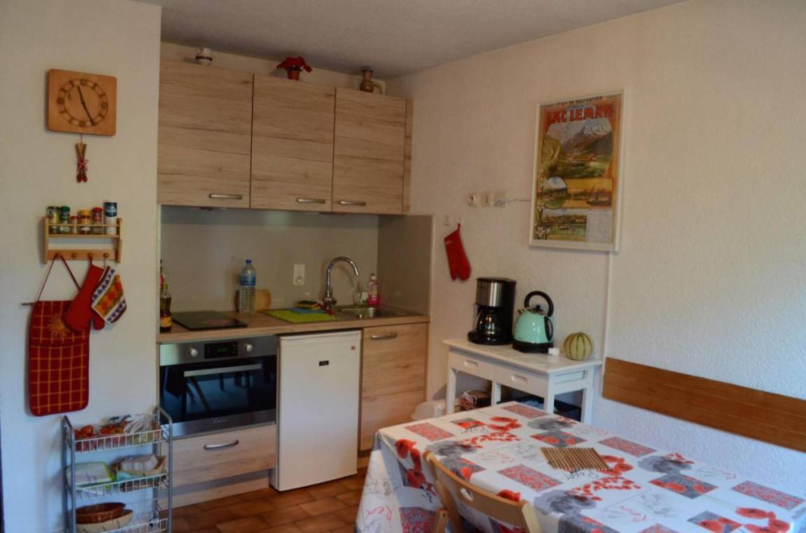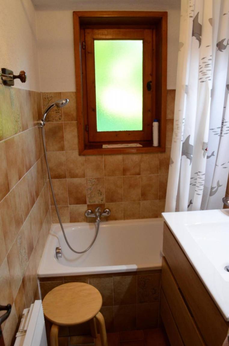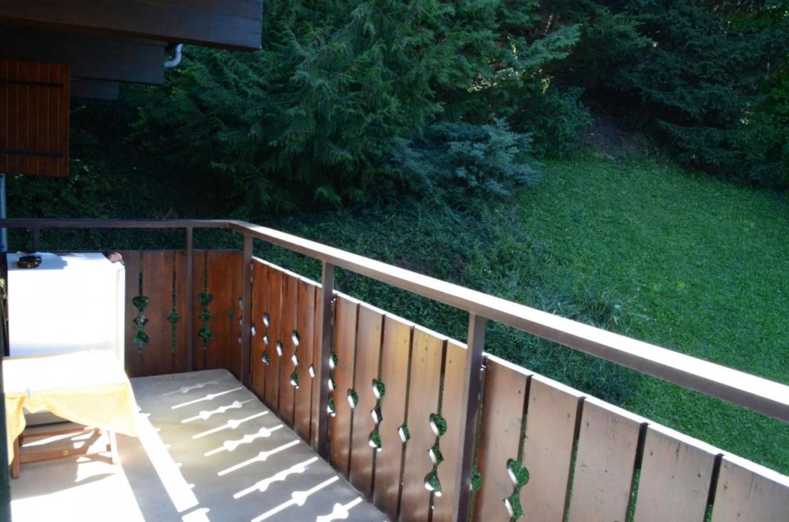 Fläche von ungefähr 30 m². Erdgeschoss. Orientierung : Ost, Süd-Ost, Süd. Wohnzimmer mit , TV. Zwischengeschoss mit Doppelbett (140x190). kleines zimmer mit 2 Stockbetten. Kochnische mit Fonduegerät, Raclettegerät, Wasserkocher, Kaffeemaschine, Toaster, Mikrowellenherd, Herdplatten, Kühlschrank, Kühl-Gefrier-Kombination. Badezimmer mit Badewanne, WC. Balkon mit Gartentisch und -stühle. Die oberen Betten sind nicht für Kinder unter 6 Jahren geeignet.