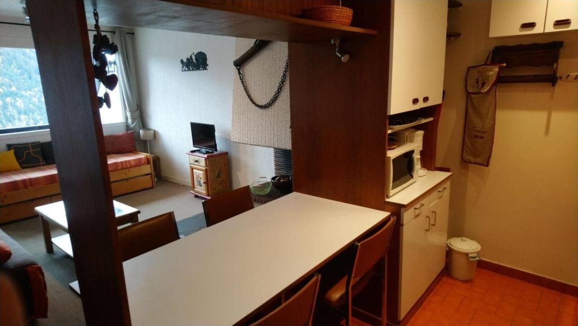 Fläche von ungefähr 30 m². 5te Etage. Orientierung : West. Wohnzimmer mit Ausziehschlafcouch für 2 Personen, Klappschlafcouch. Kochnische mit Fonduegerät, Raclettegerät, Wasserkocher, Kaffeemaschine (filtres), Backofen, Mikrowellenherd, 2 Herdplatten, Kühlschrank. Badezimmer mit Badewanne, WC. Balkon.